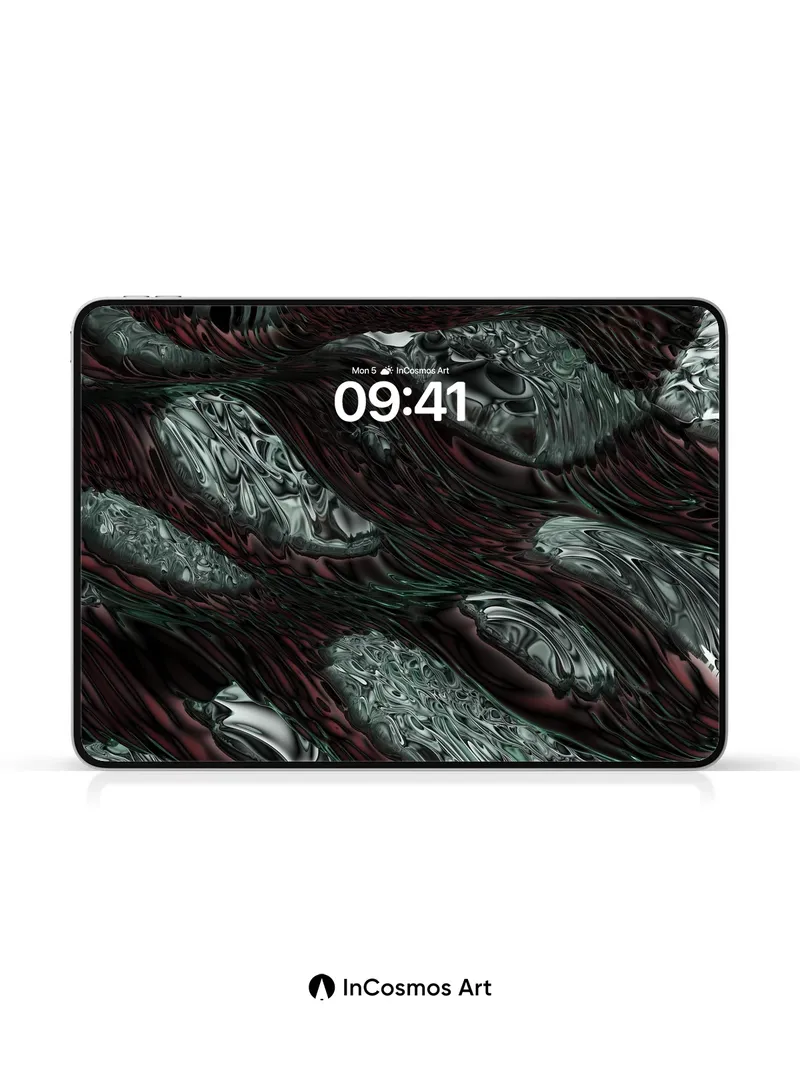 Crimson Abyss Wallpaper with Liquid Metal Veins