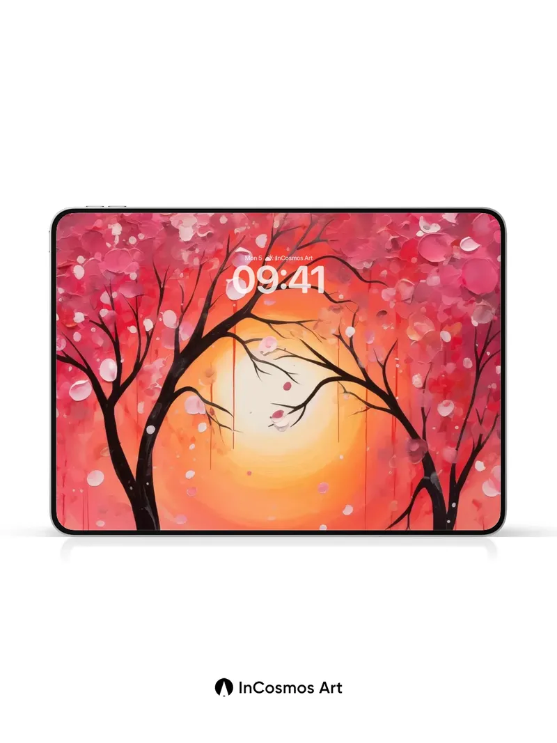 Crimson Canopy Wallpaper with Floating Petals