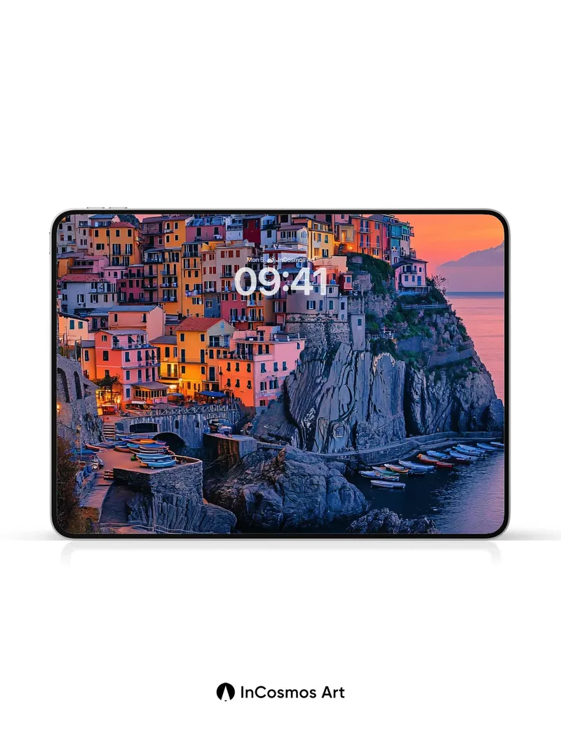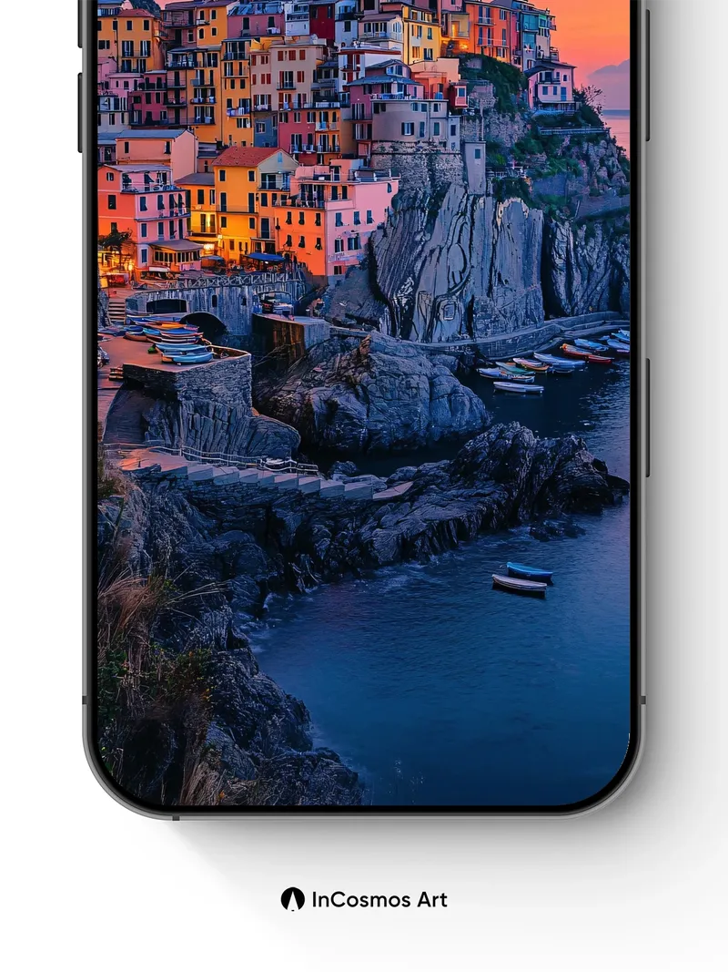 Debug product.metafields.custom.desc: Did you know the village of Manarola was built on a cliffside so steep, its homes cling like barnacles to the rock? At dusk, light crawls over terracotta roofs and climbs through windows like liquid fire, painting every stone in molten gold and deep violet. The sea below breathes slowly, reflecting the sky’s final gasp as boats rest like sleeping fish in the cove.