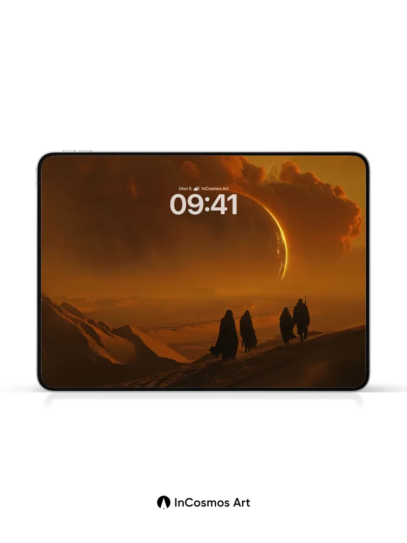 Crimson Eclipse Wallpaper with Desert Pilgrims
