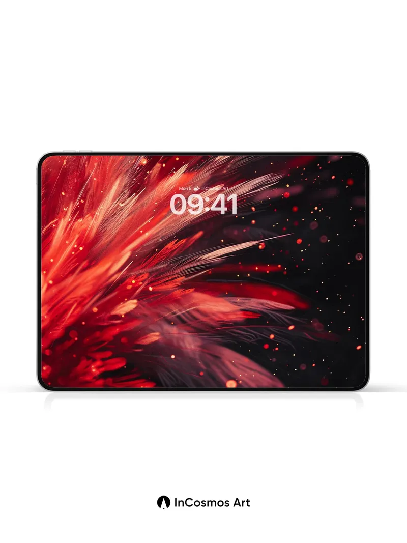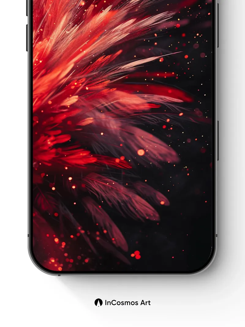 Crimson Feather Explosion Wallpaper with Cosmic Dust