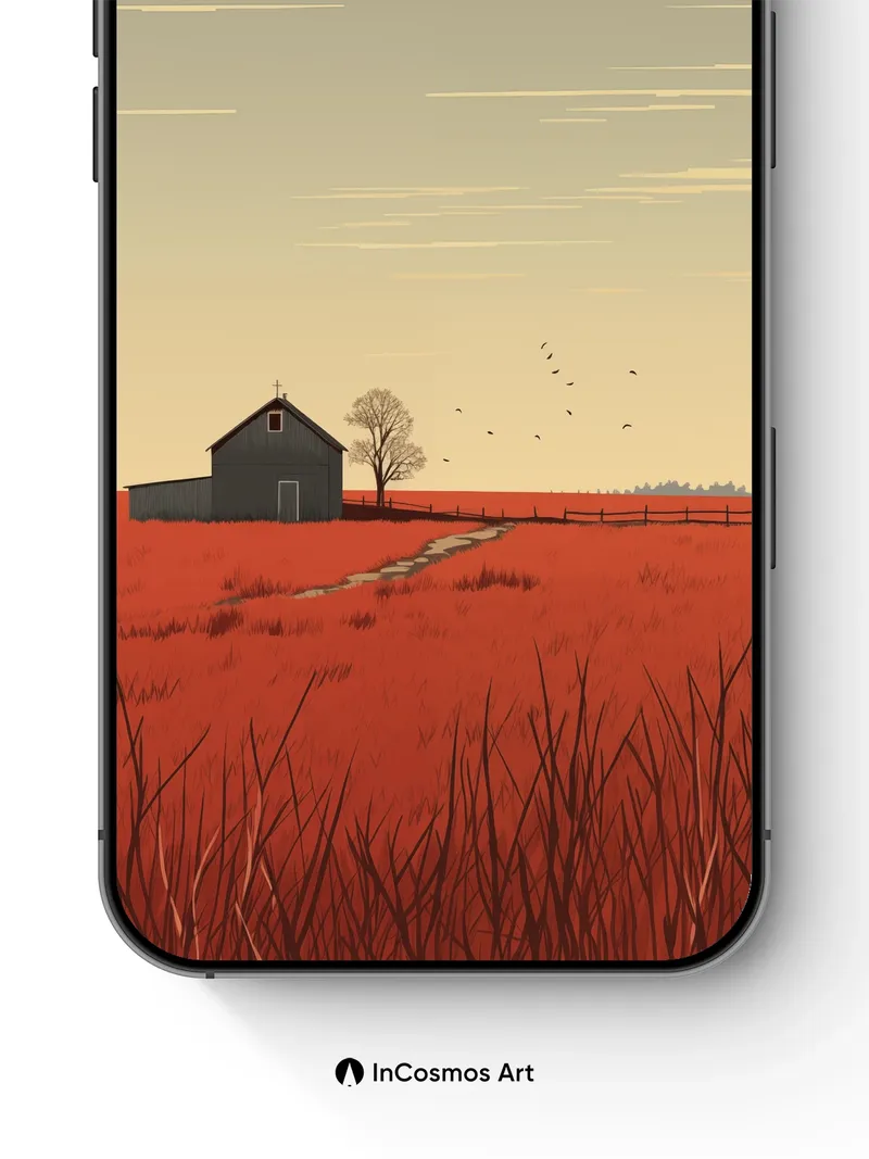 Crimson Field Wallpaper with Silent Barn
