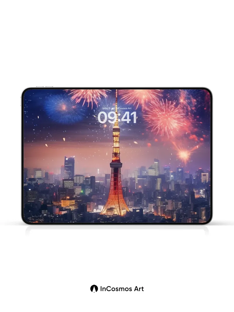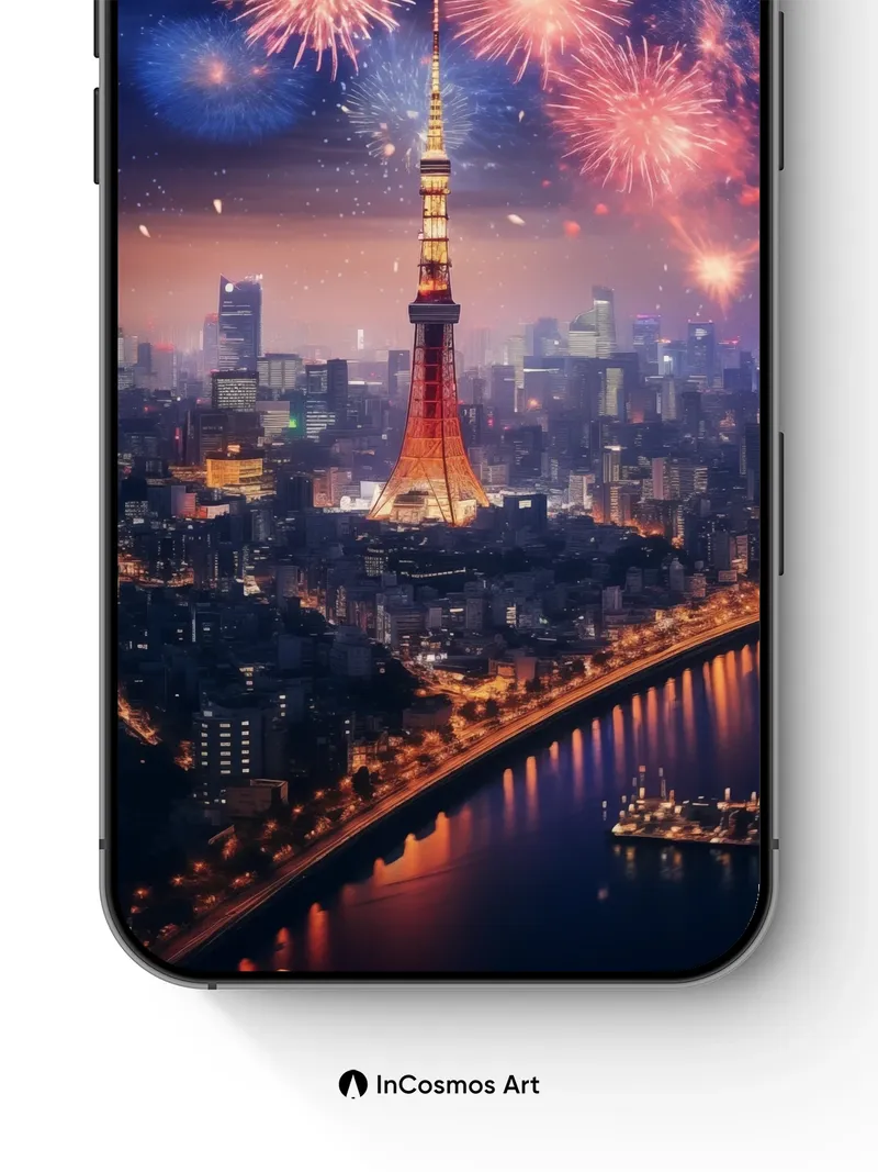 Crimson Firework Symphony Wallpaper with Tokyo Tower Glow