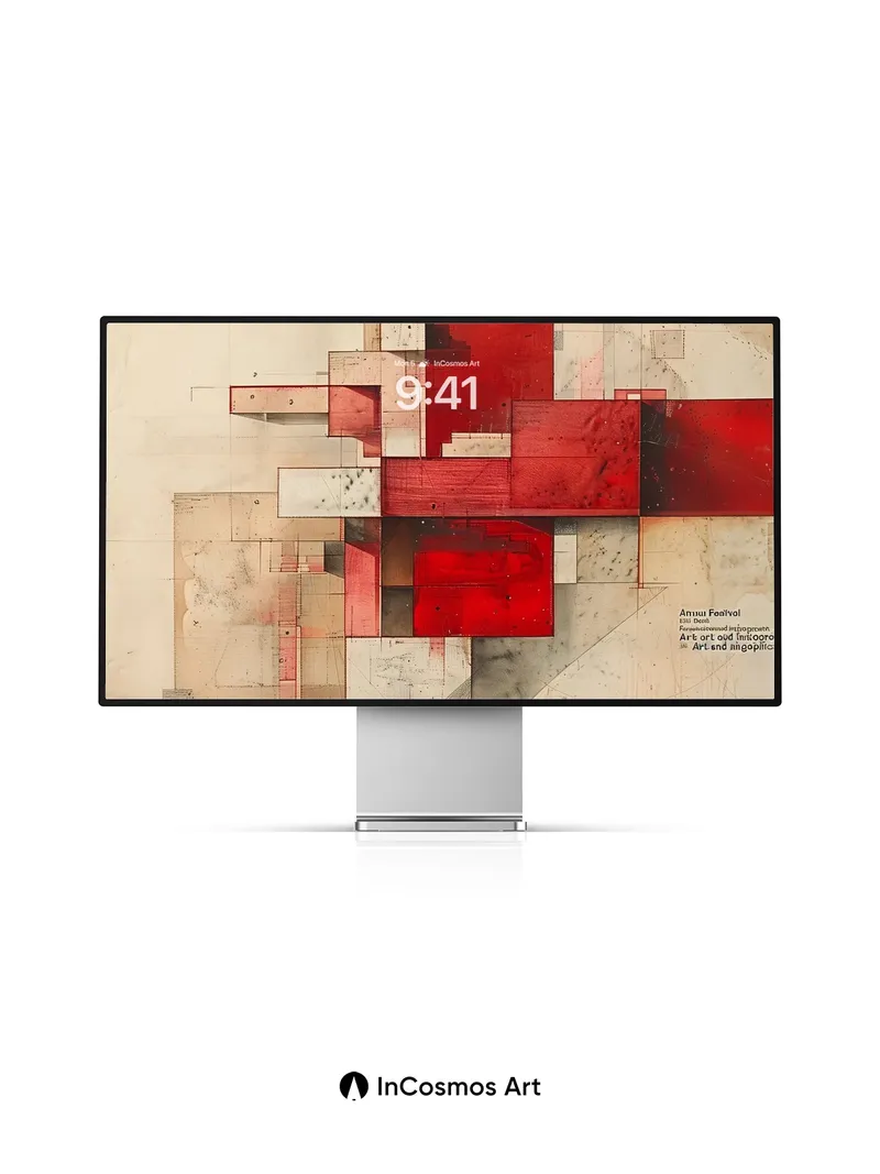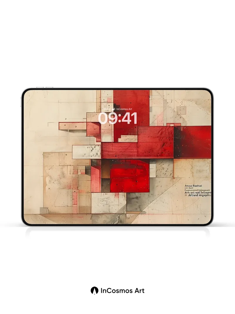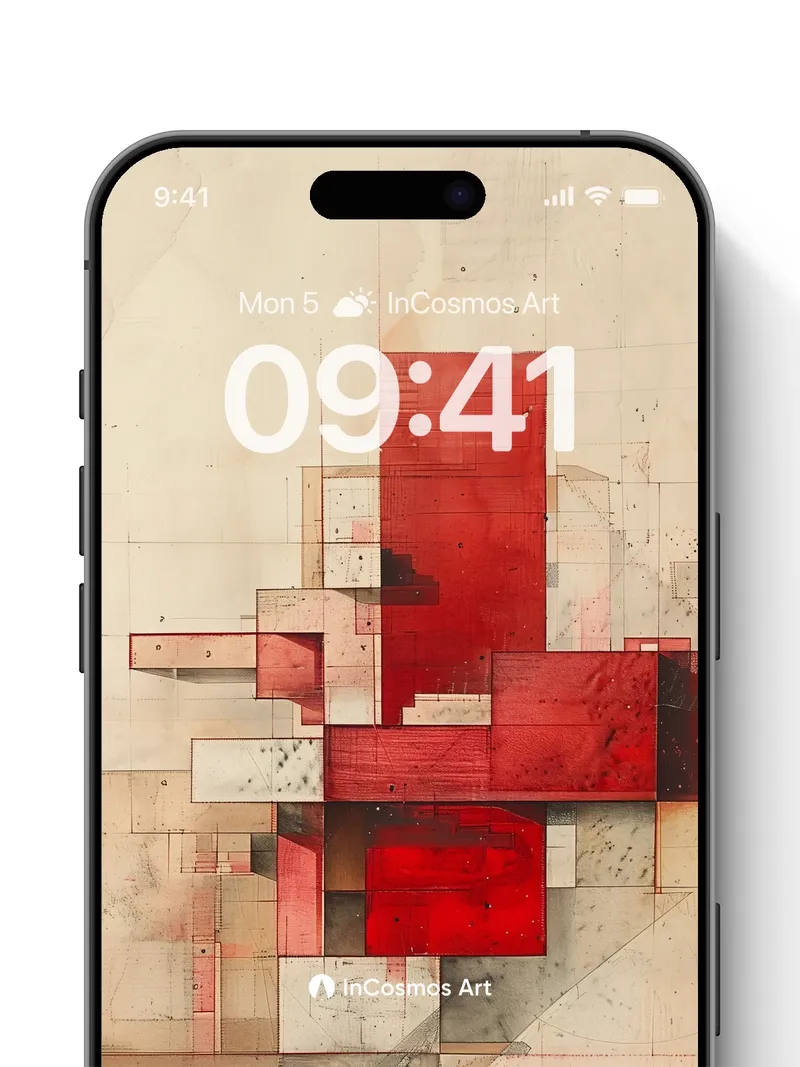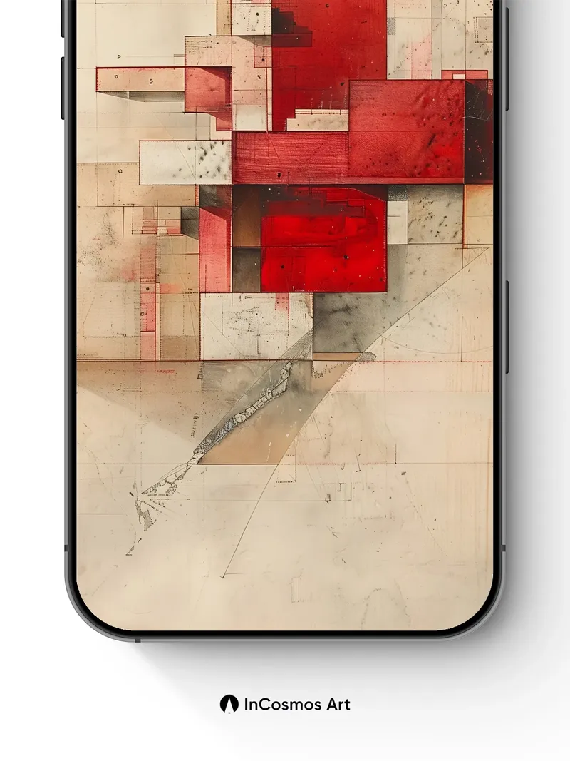 Crimson Grid Wallpaper with Architectural Echoes