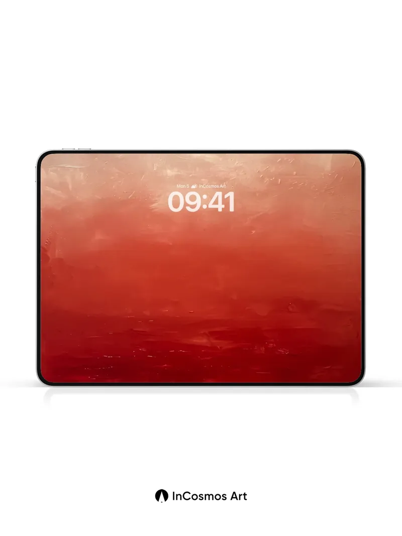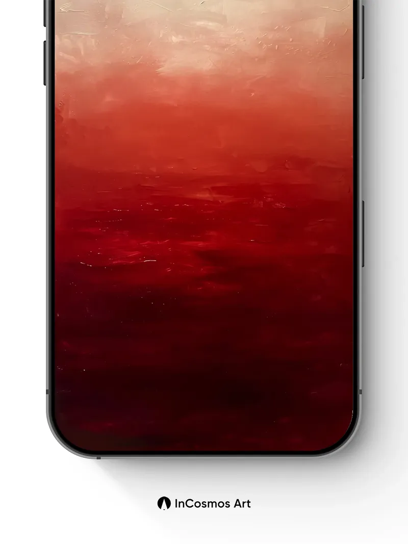 Debug page_description: Did you know that ancient alchemists believed red was the color of transformation, born from fire and earth? This deep crimson field rises like molten light beneath a hushed sky, its texture alive with faint brushstrokes that seem to breathe in the dim glow. The boundary between land and air blurs into a silent scream of pigment, where every inch feels like a whispered secret. Share this with your best friend. Send this to your love and swap a matching set. What if the world began not with light, but with blood?