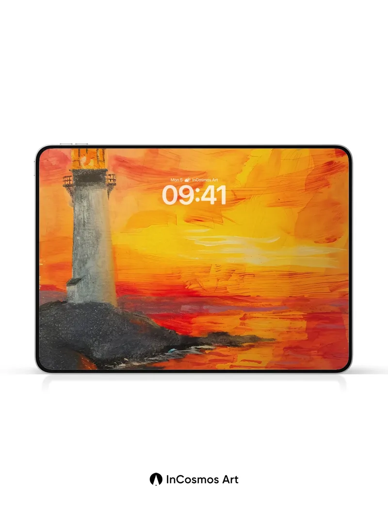 Crimson Horizon Wallpaper with Lighthouse Echo