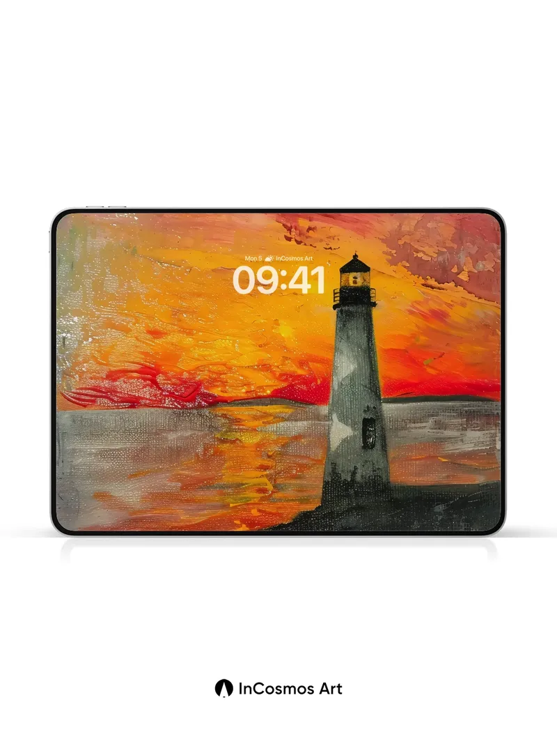 Crimson Horizon Wallpaper with Lighthouse Echo