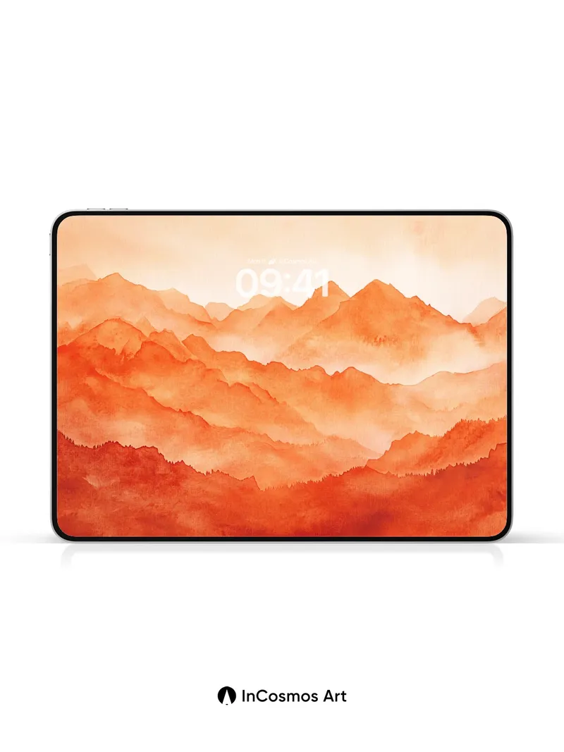 Crimson Horizon Wallpaper with Mist-Blurred Peaks