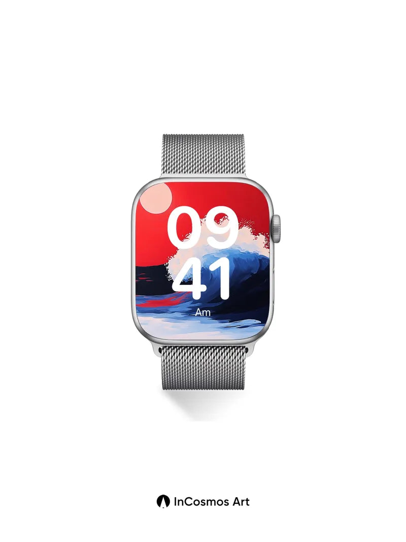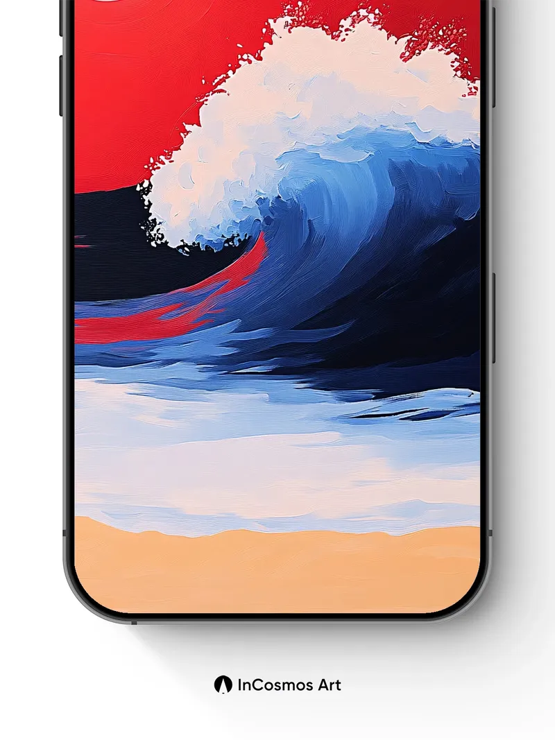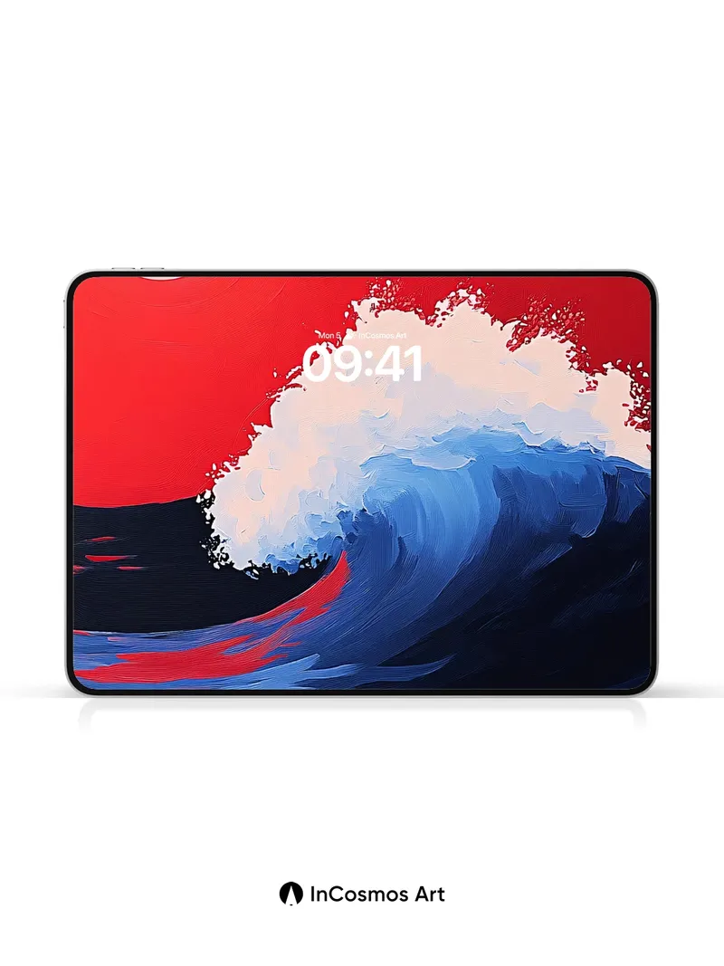Crimson Horizon Wave Wallpaper with Hokusai Echo
