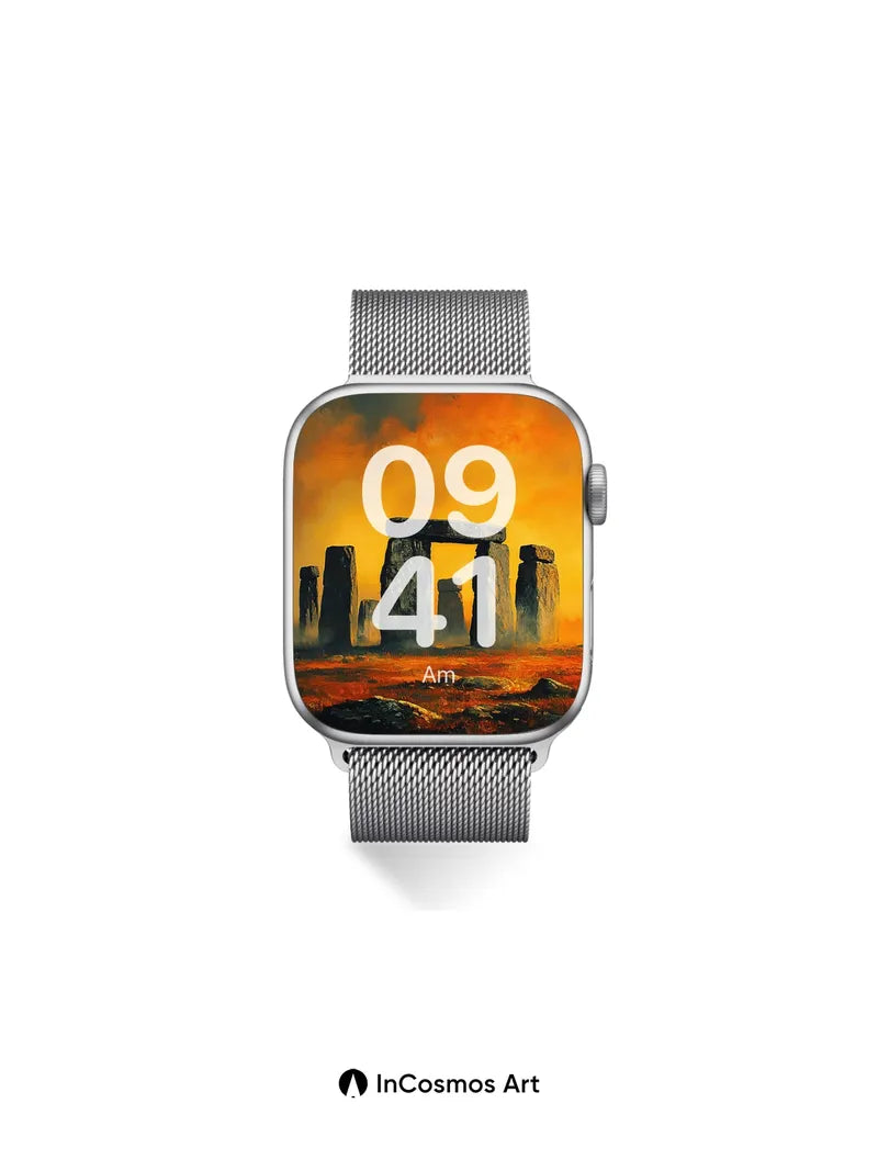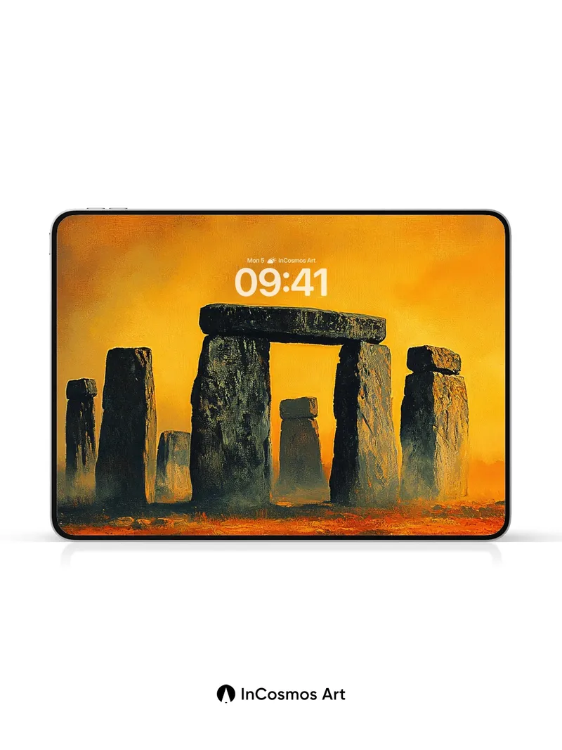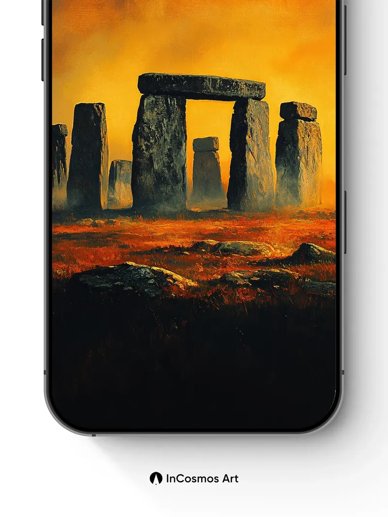 Crimson Hush Stonehenge Wallpaper with Ember Sky