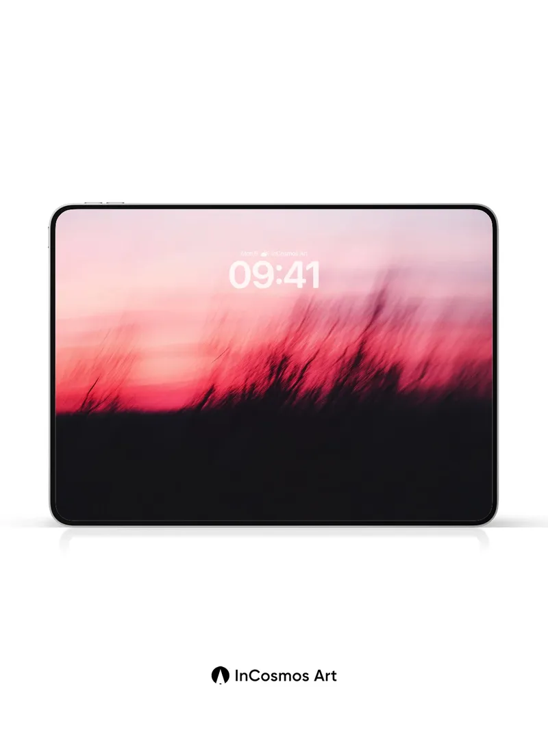 Crimson Hush Wallpaper with Blurred Grass Silhouettes