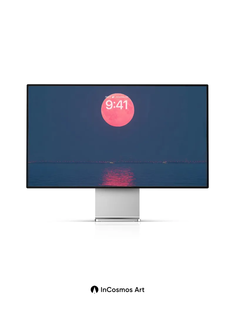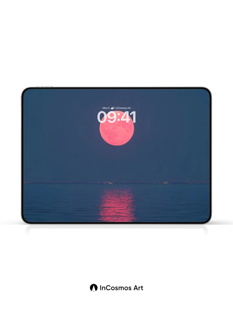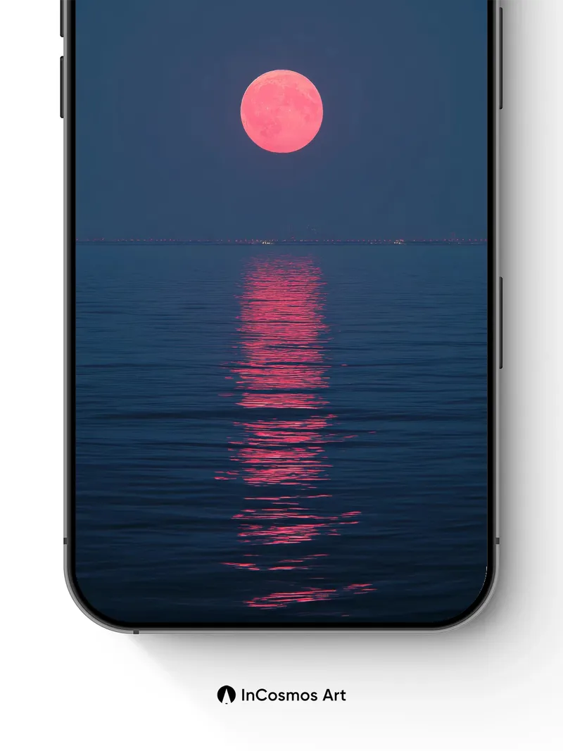 Crimson Moonlight Wallpaper with Ocean Reflection