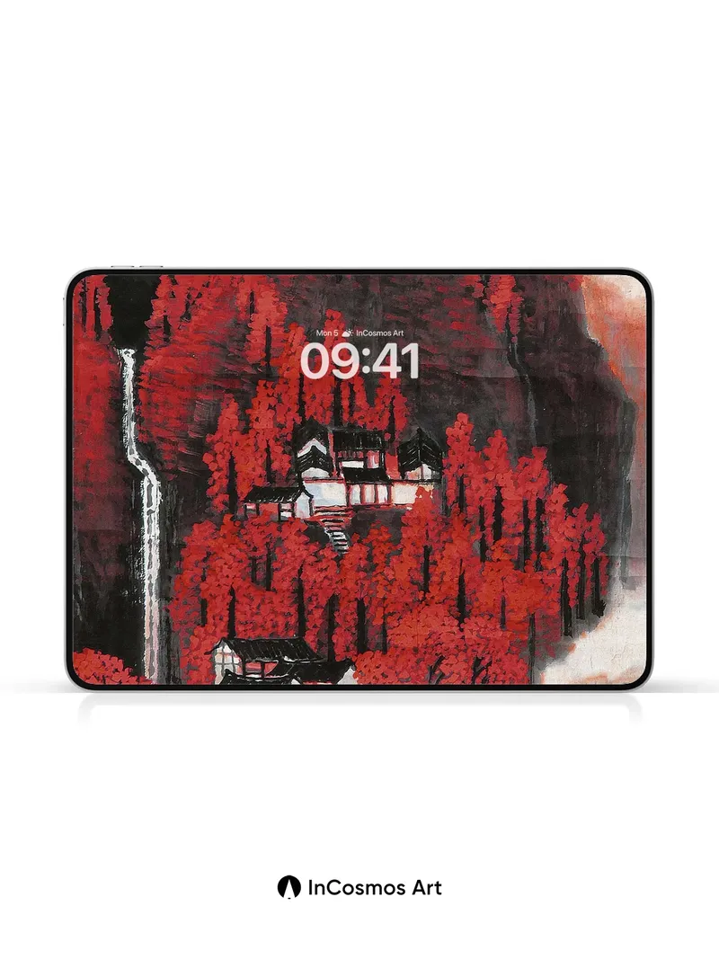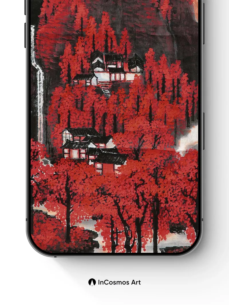 Debug product.metafields.custom.desc: Did you know that in traditional Chinese landscape painting, red maple forests symbolize the fleeting beauty of autumn and spiritual awakening? Here, fiery crimson trees climb a jagged peak like blood spilled across stone, while mist curls through ancient wooden temples nestled in silence. The light bleeds into the cliffs, turning shadows into deep velvet, and each leaf seems to breathe with its own pulse—burning not just in color, but in memory.