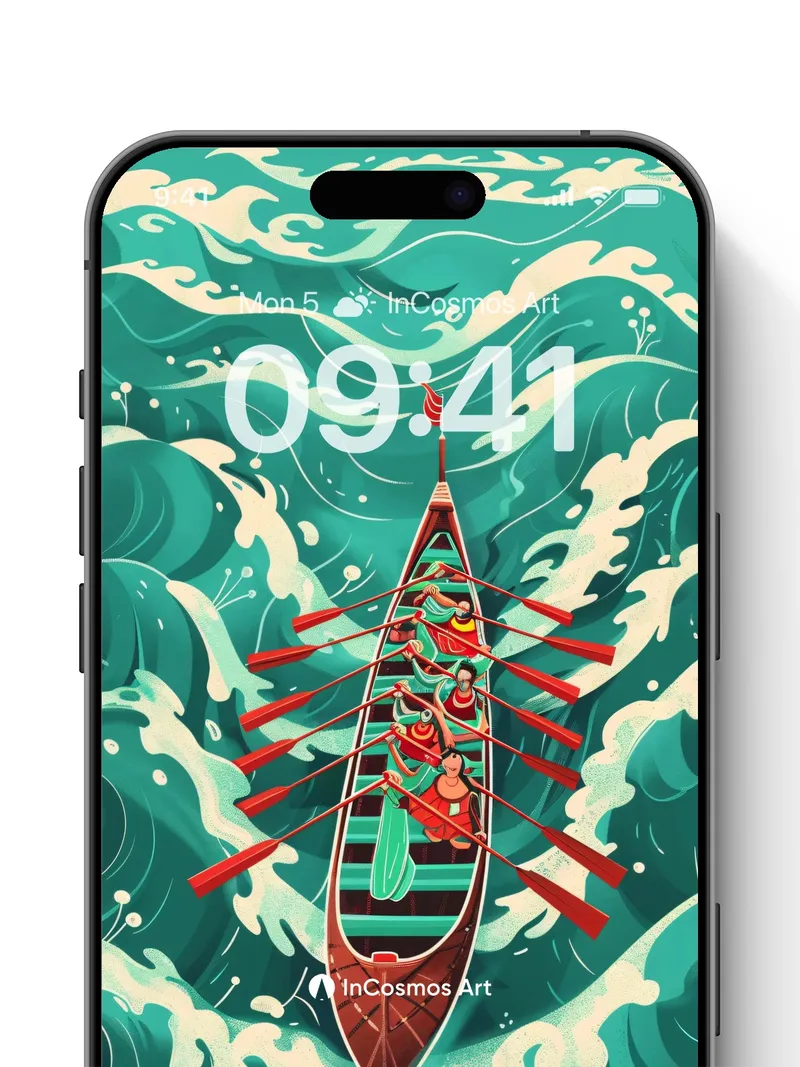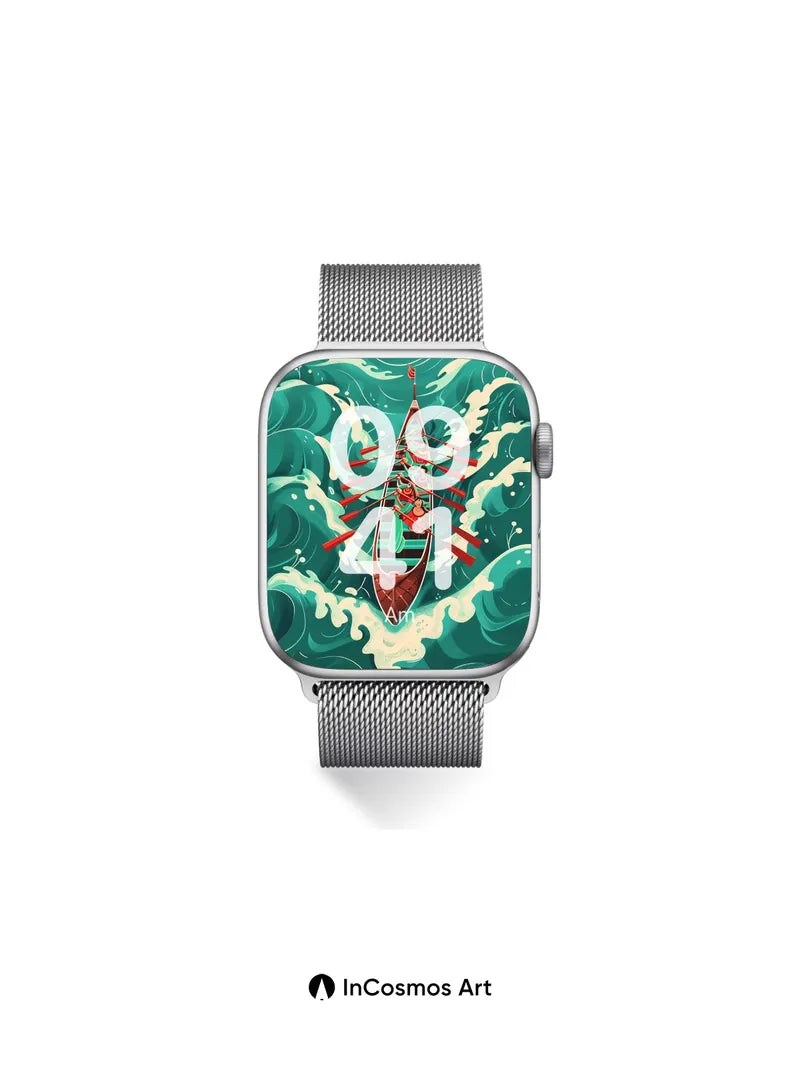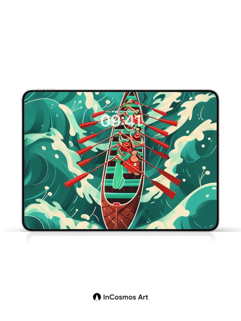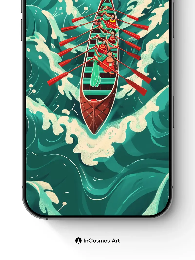 Did you know the Japanese wave pattern in this artwork echoes the same swirling energy found in Hokusai’s Great Wave? You’re not just seeing water—you’re feeling it breathe, crash, and coil around a crimson canoe slicing through emerald depths. The oars dip like red arteries into the sea, each stroke pulling you deeper into a mythic journey where motion becomes ritual.