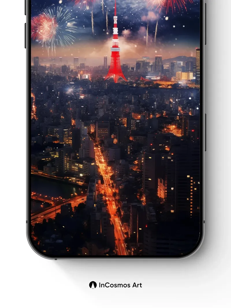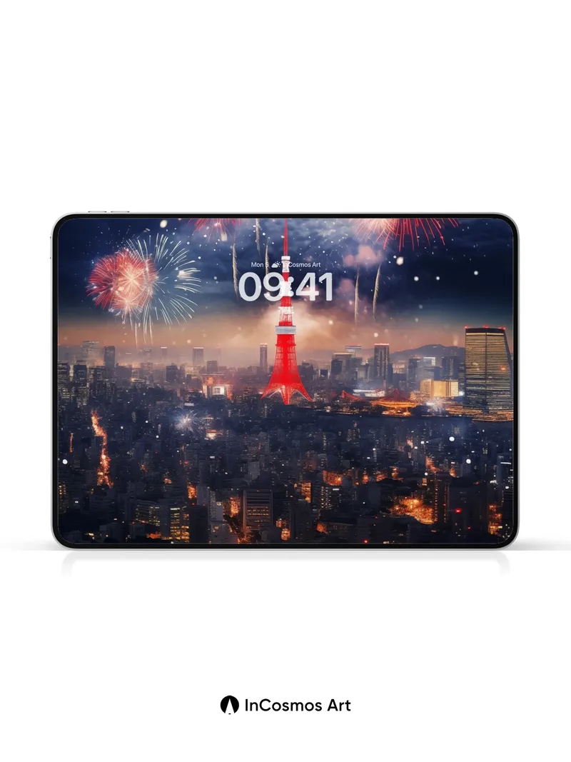 Crimson Reverie Wallpaper with Tokyo Tower Fireworks