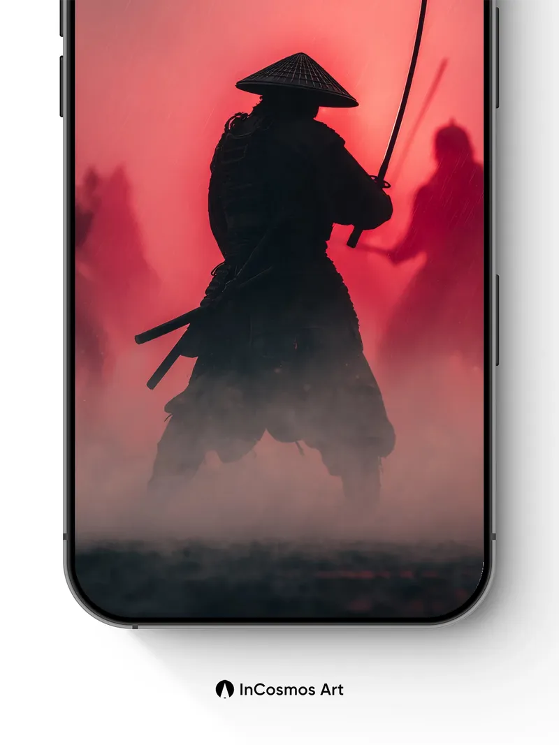Debug product.metafields.custom.desc: Did you know that in feudal Japan, samurai wore dark armor not just for battle but to absorb the sun’s heat during long marches? Here, a lone warrior stands in silhouette against a blood-orange sky, his katana raised like a blade of memory. The mist curls around his feet like forgotten vows, and the red light bleeds through the fog as if the horizon itself is wounded.