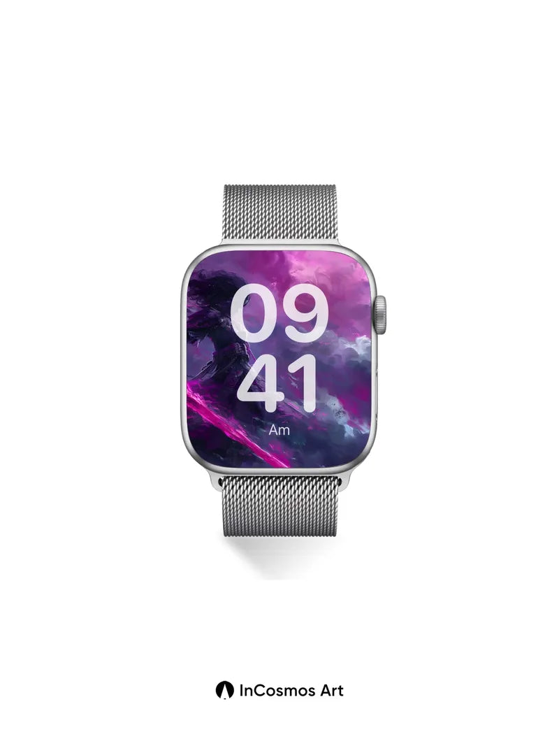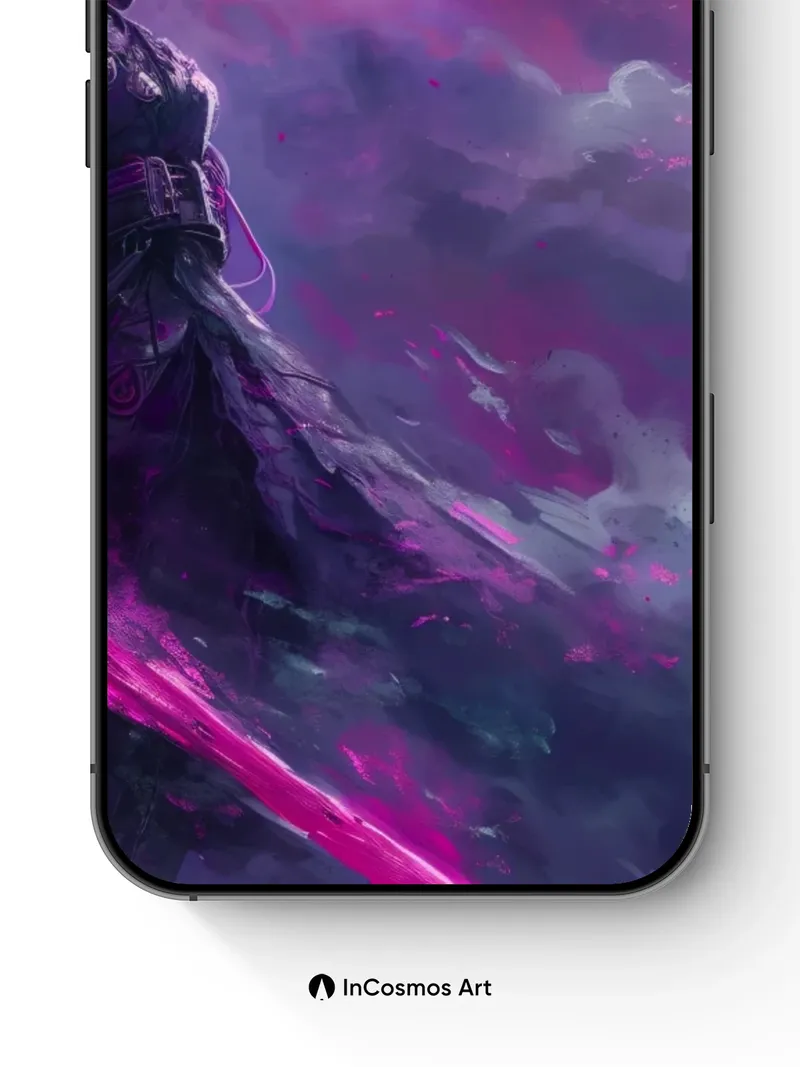 Debug product.metafields.custom.desc: Did you know the color magenta was first synthesized in 1859 and named after a French town? Here, it pulses like liquid fire along the edge of a sword that cuts through swirling violet clouds, its light crawling over dark fabric like an ancient spell. You stand at the edge of a world where magic is not unseen but felt—cool on your skin, sharp in your breath.