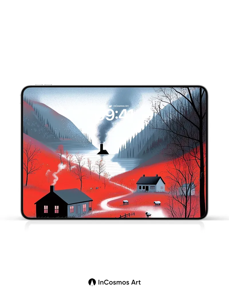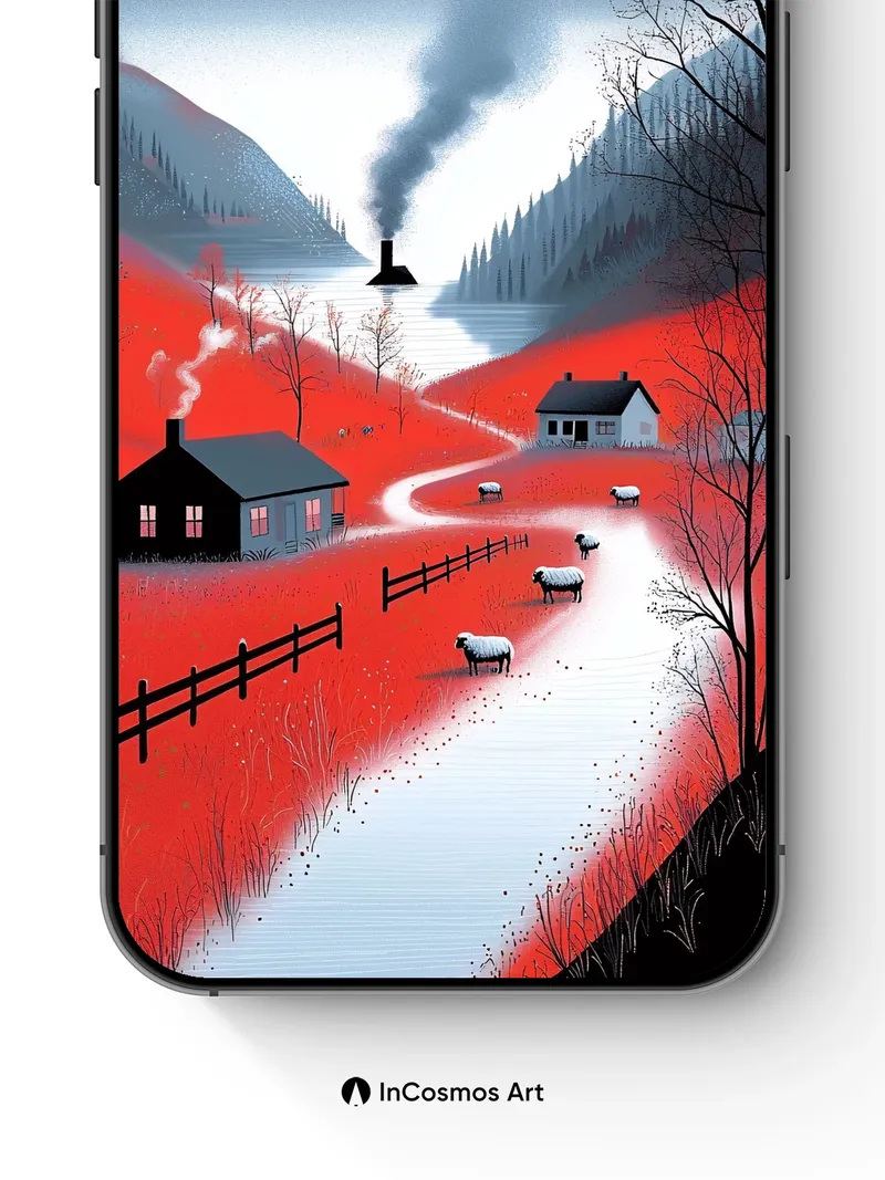 Crimson Valley Wallpaper with Smoking Chimney