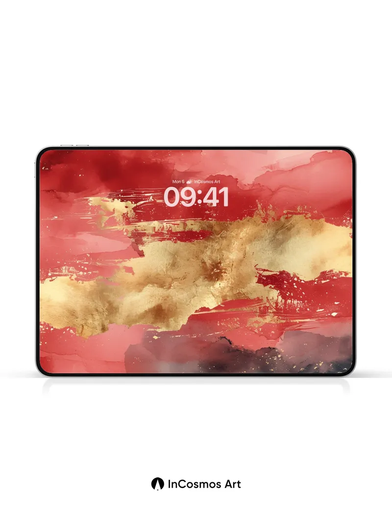 Crimson Veil Wallpaper with Gold Ash Drift