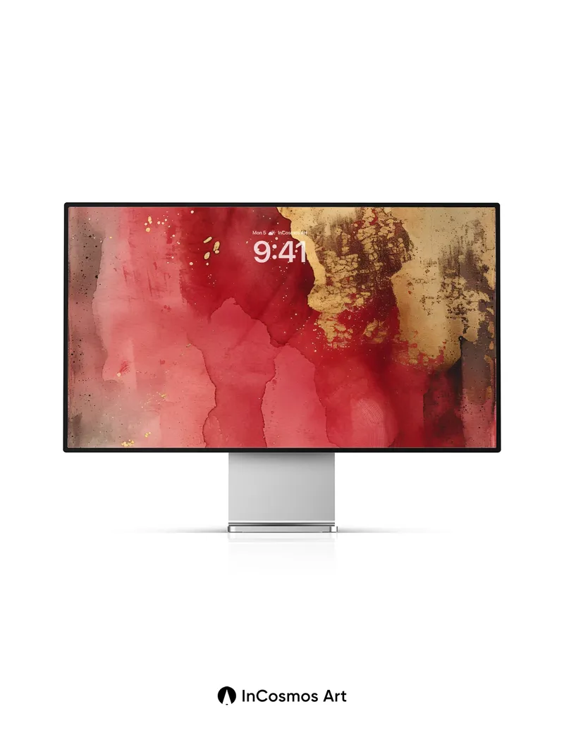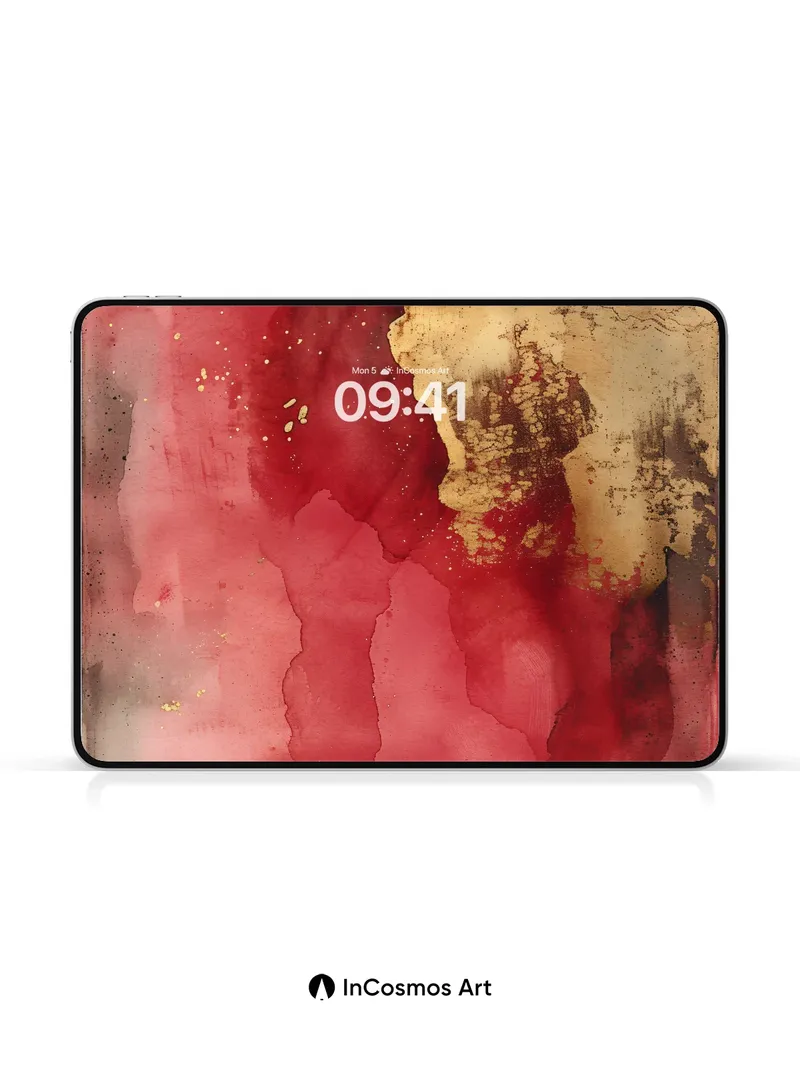 Debug page_description: Did you know that ancient Japanese artisans used rice paste and gold leaf to create luminous textures on silk? Here, deep crimson stains bleed like liquid memory across a parchment-like surface, while flecks of metallic gold fracture the dark, as if light itself is breaking through time. The texture breathes—each stain a whisper of decay and rebirth, where color doesn’t just sit but *lives* beneath your gaze. Share this with your best friend. Send this to your love and swap a matching set. What if every wall held a secret written in pigment?