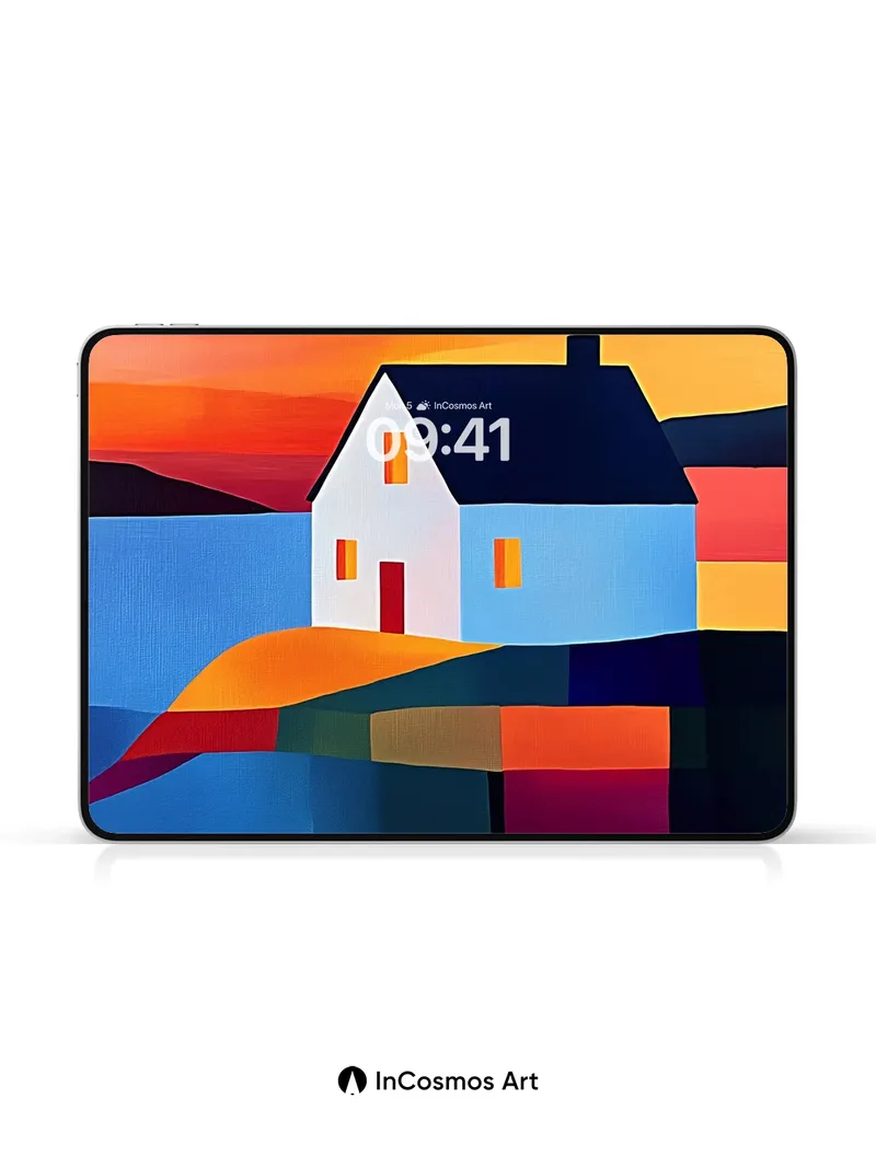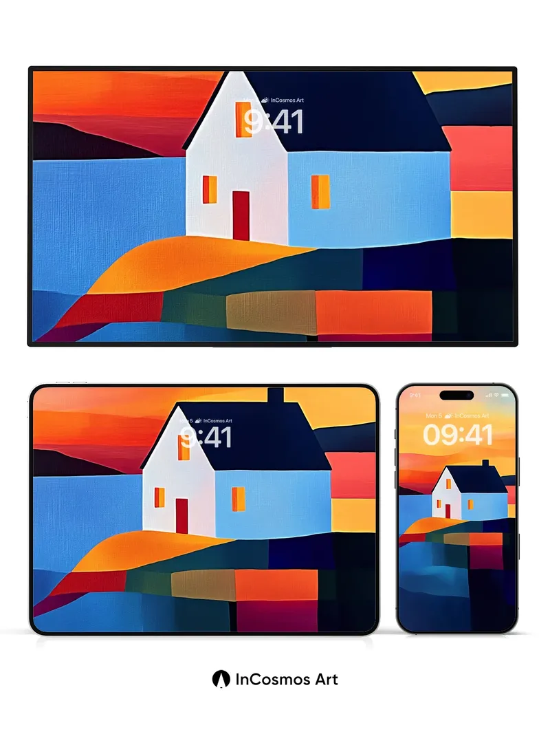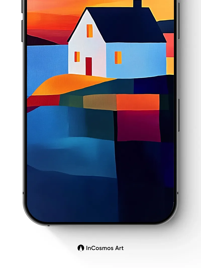 Cubist Sunset Wallpaper with Floating House