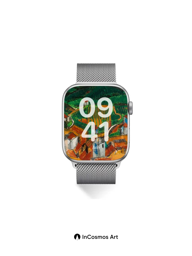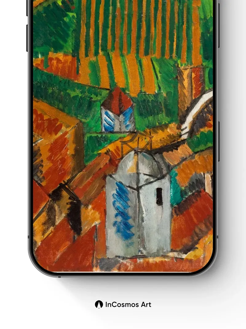 Debug page_description: Did you know Expressionist painters used bold color to express inner emotion rather than outer reality? Here, angular rooftops and fractured fields pulse with a rhythm only seen in dreams, where light fractures like stained glass over terracotta and emerald hills. The village breathes in geometric harmony, each house a silent poem written in sharp edges and saturated hues. Share this with your best friend. Send this to your love and swap a matching set. What if every wall could whisper the story of a forgotten hillside?