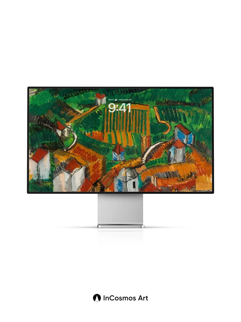 Debug product.metafields.custom.desc: Did you know Expressionist painters used bold color to express inner emotion rather than outer reality? Here, angular rooftops and fractured fields pulse with a rhythm only seen in dreams, where light fractures like stained glass over terracotta and emerald hills. The village breathes in geometric harmony, each house a silent poem written in sharp edges and saturated hues.