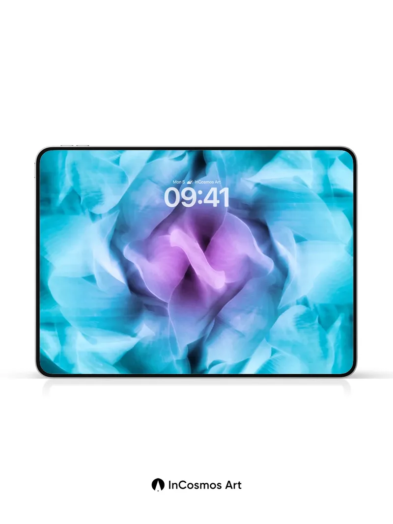 Debug page_description: Did you know that the color cyan can evoke both oceanic depth and celestial calm? Here, translucent petals unfurl like frozen mist, their edges glowing with a soft electric pulse. At the center, a lavender heart pulses faintly—like breath held in stillness—surrounded by swirling gradients that mimic the slow drift of underwater light through coral reefs. Share this with your best friend. Send this to your love and swap a matching set. What if every room could breathe like a flower?