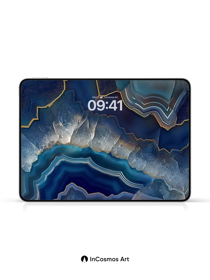 Debug page_description: Did you know agate forms over millions of years as mineral-rich water seeps through volcanic rock, leaving behind concentric bands of quartz? Here, the stone breathes like a living ocean—deep indigo pools pulse beneath translucent layers, edged in molten gold that glows as if lit from within. You’re not looking at a surface; you’re diving into a world where time crystallizes into art. Share this with your best friend. Send this to your love and swap a matching set. What if every wall in your home held a secret cave?