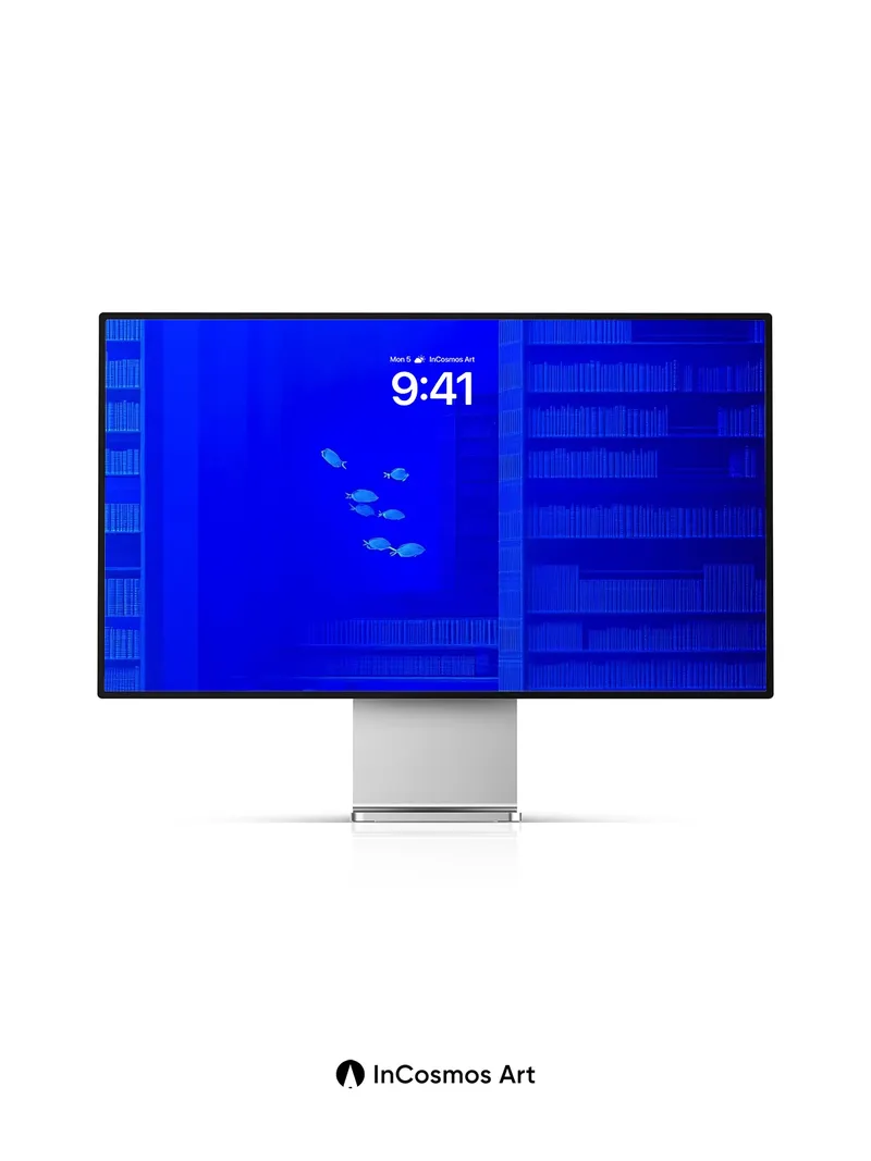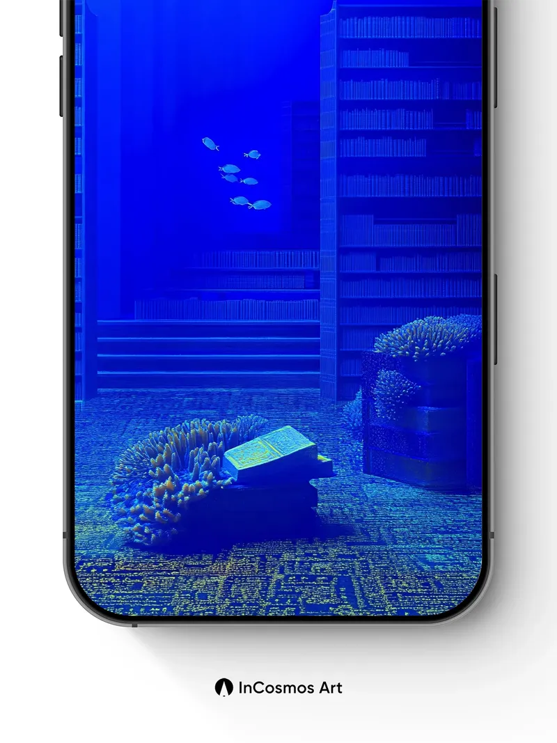 Debug product.metafields.custom.desc: Did you know the deep sea’s bioluminescent creatures emit light through chemical reactions in their bodies? In this digital abyss, shelves of data rise like coral reefs, and schools of glowing fish glide past stacks of code that breathe in electric blue. The floor shimmers with a mosaic of forgotten scripts, while a single book rests on a mound of living texture—its pages flickering like a heartbeat beneath the surface.