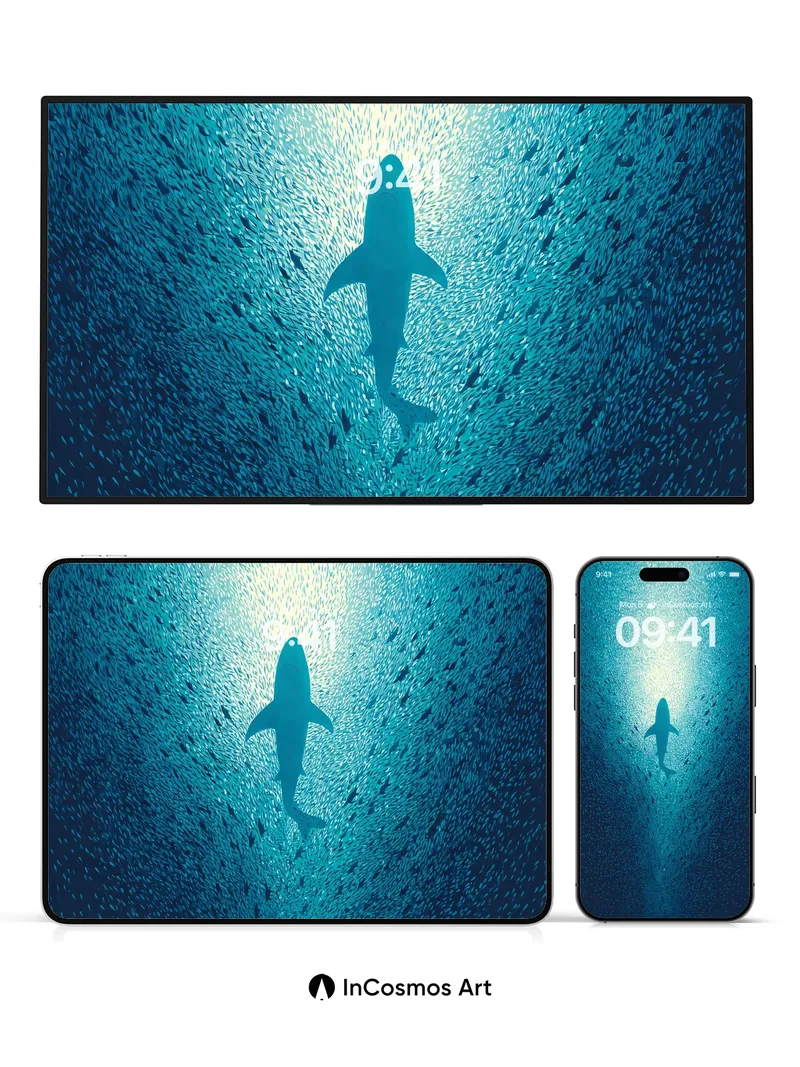 Debug page_description: A thousand tiny scales scatter the light like shattered glass, while a single dark silhouette cuts through the center. Did you know sharks have no bones, only cartilage, making them lighter than water as they glide through the crushing pressure of the deep? This is the quiet tension of the ocean floor, where the school moves as one fluid organism and the predator waits in the stillness. A thousand tiny scales scatter the light like shattered glass, while a single dark silhouette cuts through the center. Did you know sharks have no bones, only cartilage, making them lighter than water as they glide through the crushing pressure of the deep? This is the quiet tension of the ocean floor, where the school moves as one fluid organism and the predator waits in the stillness. Share this with your best friend. Send this to your love and swap a matching set. Do you hear the silence between the waves?
