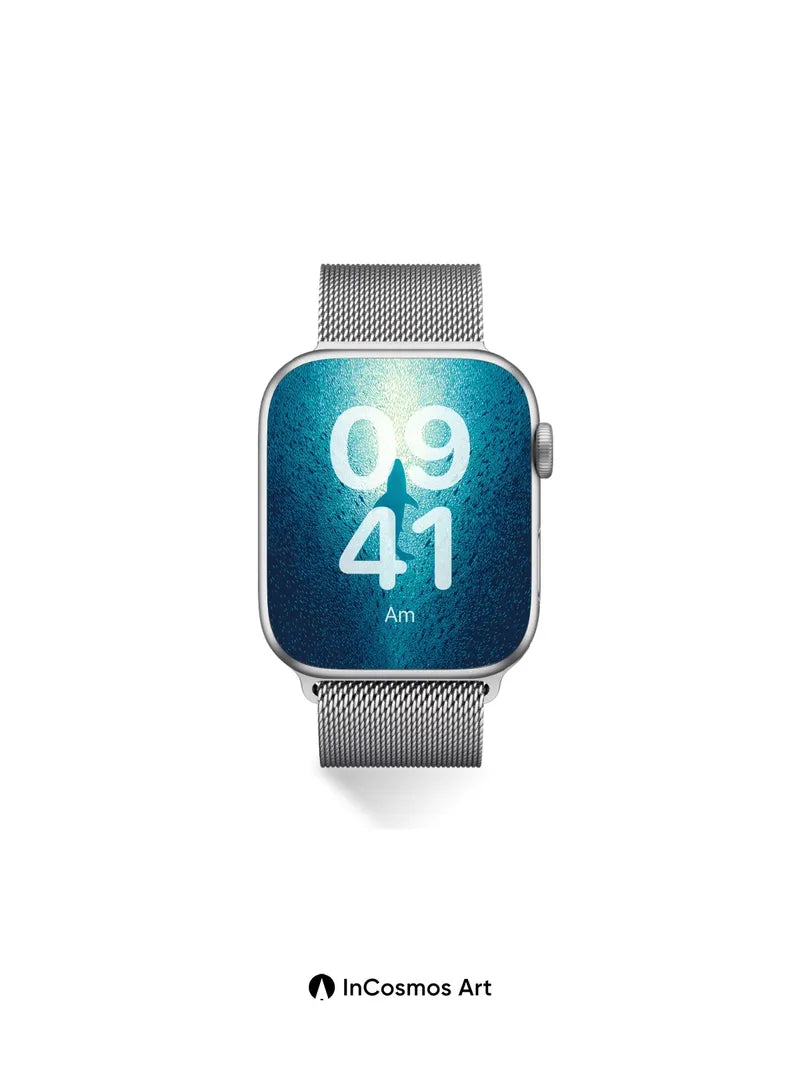 Debug product.metafields.custom.desc: A thousand tiny scales scatter the light like shattered glass, while a single dark silhouette cuts through the center. Did you know sharks have no bones, only cartilage, making them lighter than water as they glide through the crushing pressure of the deep?