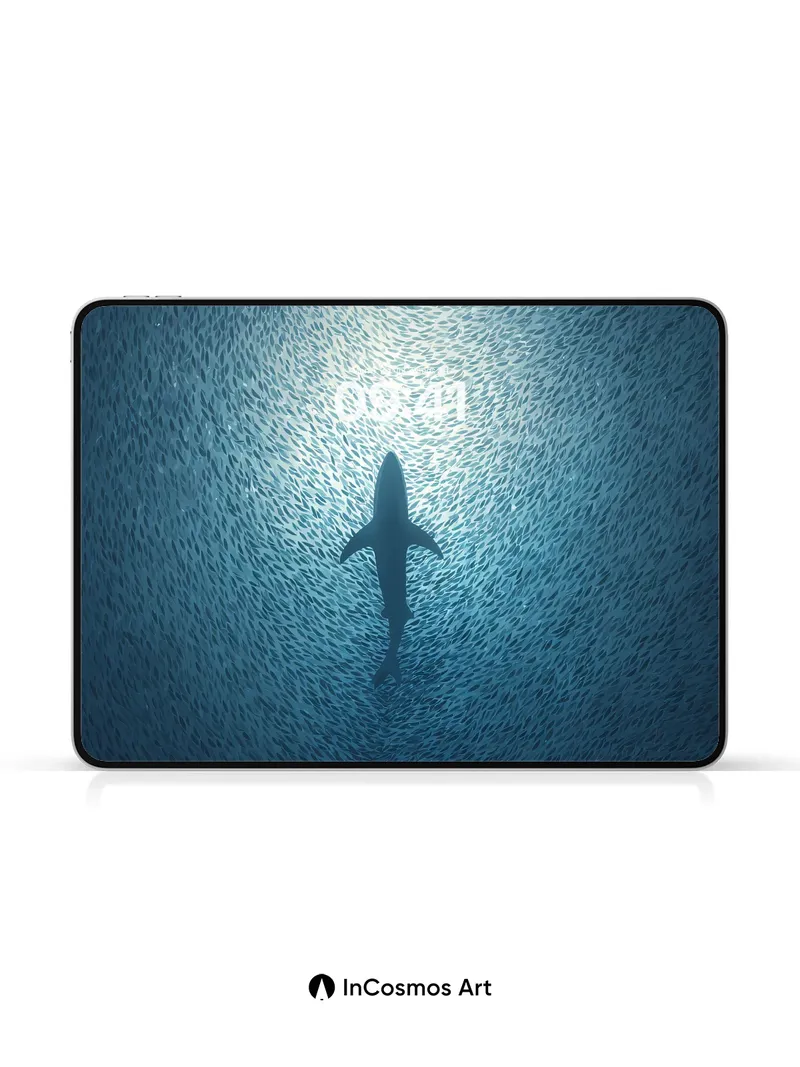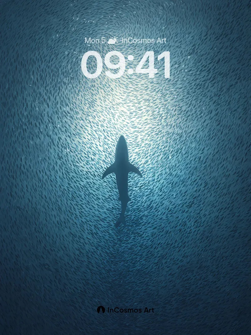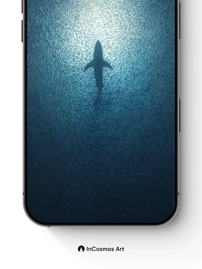A single shark cuts through a school of silver fish, the water around it a deep, quiet blue. Did you know sharks have been around for over 400 million years? They've seen it all. Share this with your best friend. Send this to your love and swap a matching set. What secrets does the deep blue hold? The full resolution of this artwork/wallpaper is 4320 × 7708, with a file size of 4.56 MB MB. Image in App code: kc1709 1080:1927 Applicable to mobile phones. This product only contains one wallpaper, other wallpapers in the multi-device effect preview need to be purchased separately. Download Information The download link will be on the “Thank You” page once payment is completed. Most wallpaper themes can be instantly downloaded once payment is processed. Few wallpaper backgrounds will generally be processed and sent within 48 hours to your email inbox as our team must confirm that patterns, quality, and links are in proper working order before shipping.