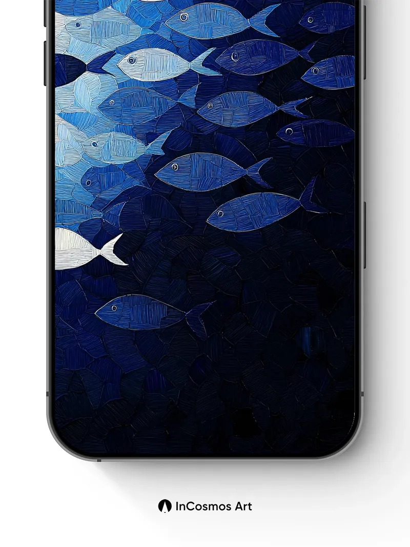 Deep Currents Wallpaper with Textured Fish Motif