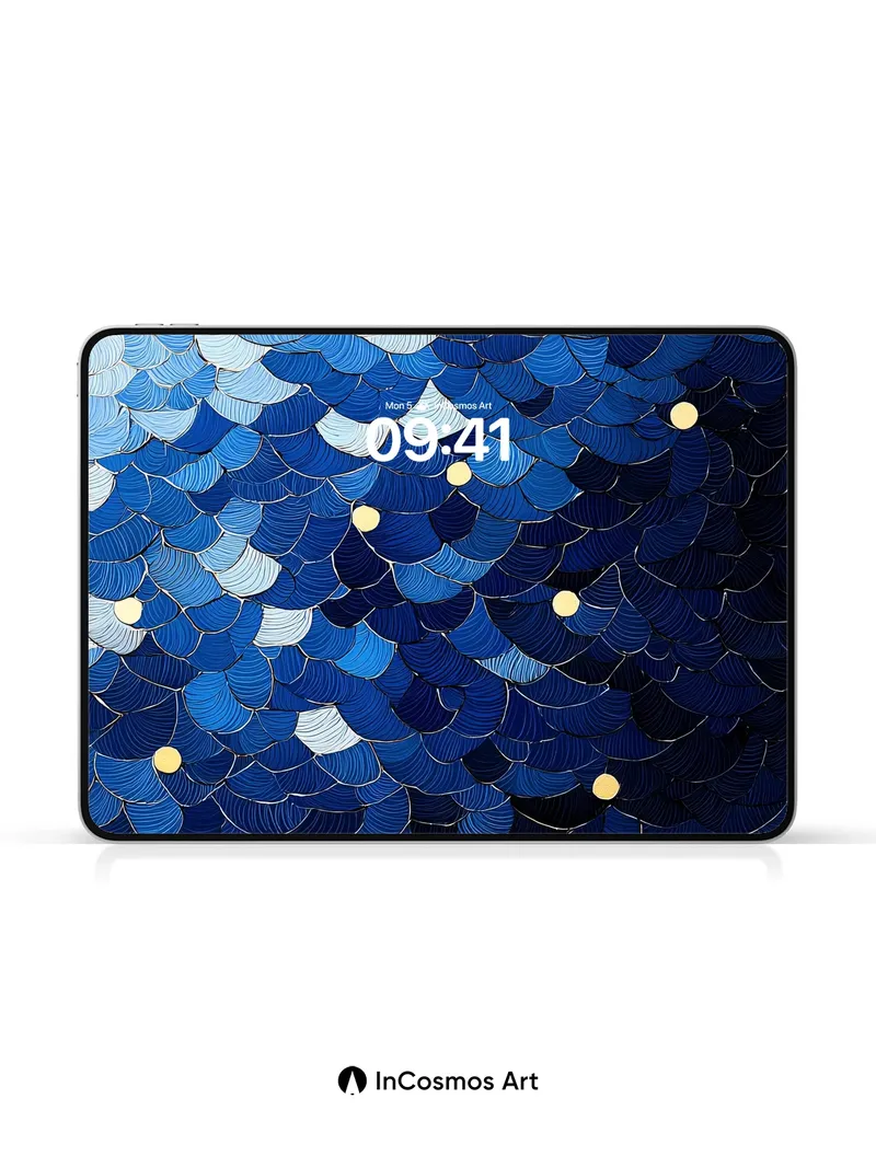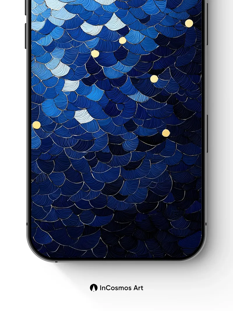 Deep Ocean Scale Wallpaper with Golden Dots