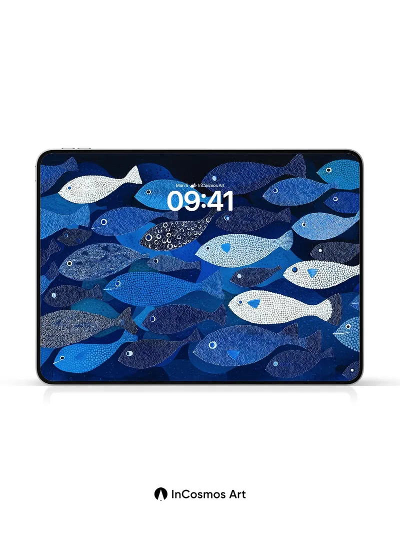 Deep Sea Whisper Wallpaper with Polka-Dot Fish