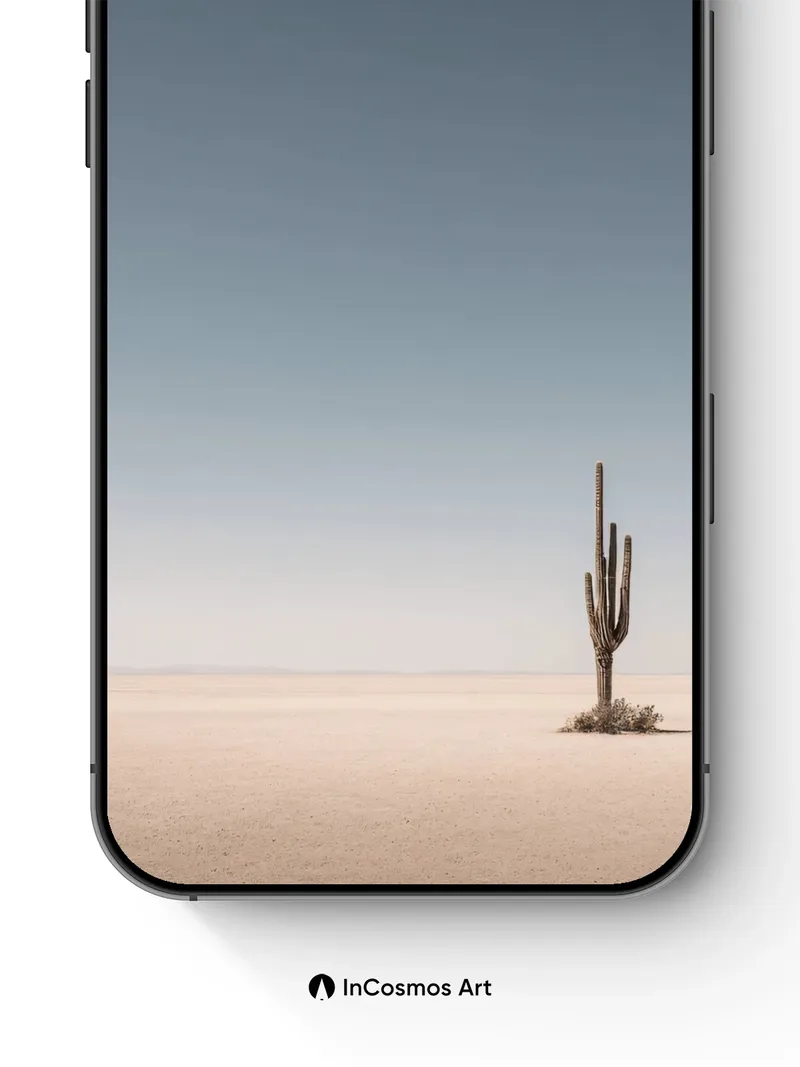 Desert Solitude Wallpaper with Single Cactus