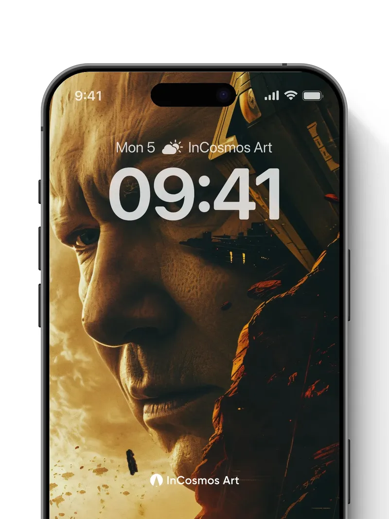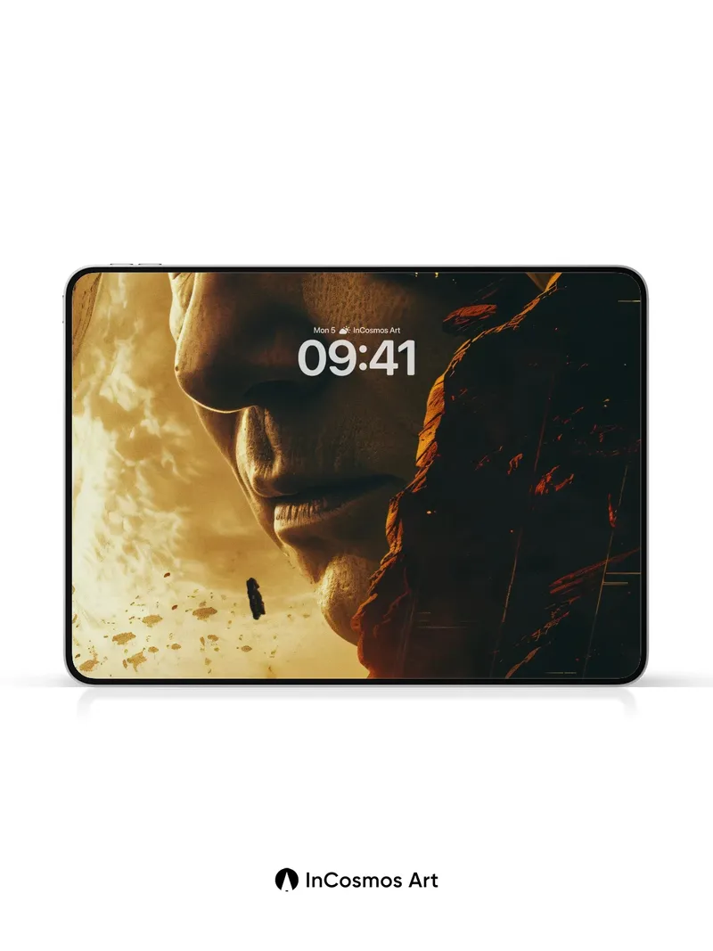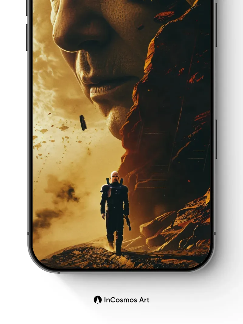 Debug product.metafields.custom.desc: Did you know that ancient astronauts once carved faces into mountains to guide lost travelers? Here, a colossal visage watches over a lone warrior walking through rust-colored canyons beneath a storm-wracked sky, where light crawls like fire across weathered stone and dust blooms in the wind. The silence hums with purpose, as if every grain of sand remembers a forgotten war.