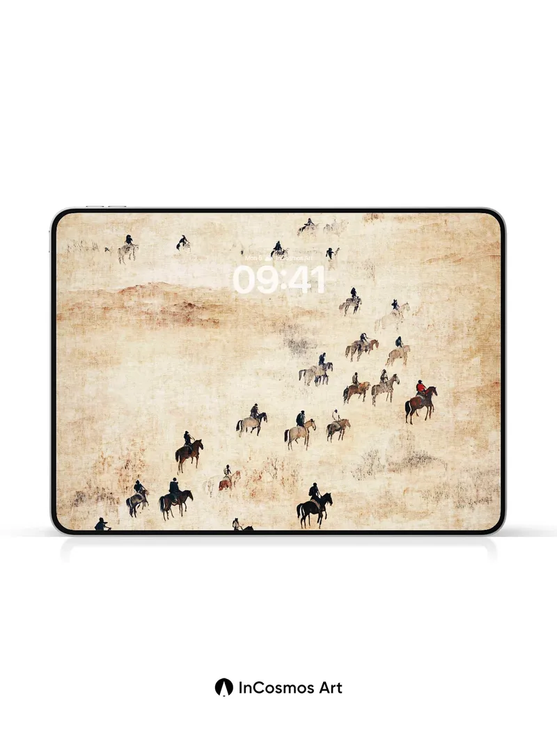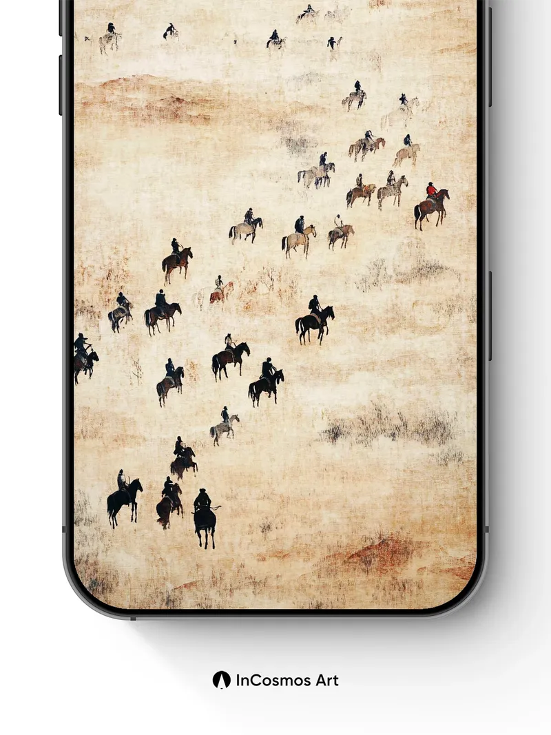 Dust Mirage Wallpaper with Horse Caravan Trails