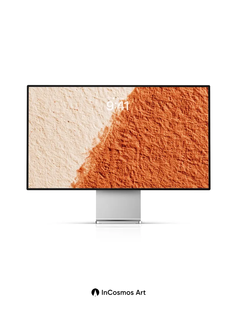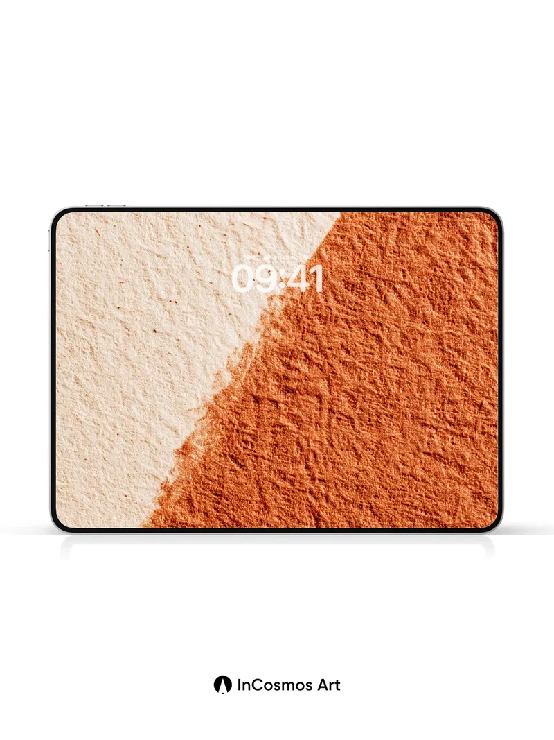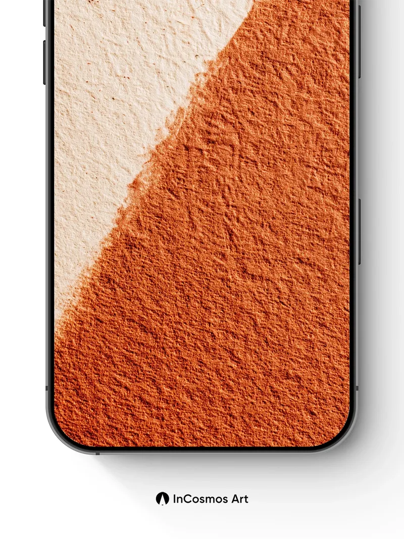 Debug page_description: Did you know terracotta pigments were once used in ancient Egyptian wall paintings to symbolize fertility? Here, the warm rust hue breathes life into a rough-hewn surface, where light crawls over every grain like time itself. The diagonal split between raw cream and burnt clay feels like a silent conversation between earth and sky—quiet, deliberate, and deeply rooted in nature’s rhythm. Share this with your best friend. Send this to your love and swap a matching set. What if walls could remember the touch of wind?