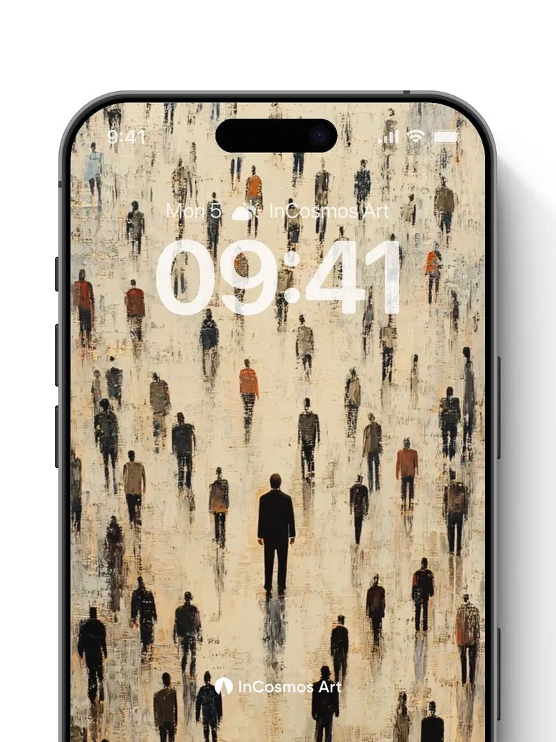 Debug product.metafields.custom.desc: Did you know that in the 19th century, London’s fog was so thick it could obscure entire city blocks? Here, a sea of silhouetted figures drifts across a pale, textured canvas, each one a shadowed echo of solitude amid collective motion. The light breathes faintly through the dust-hued surface, as if memory itself is walking forward—slow, deliberate, and never quite alone.