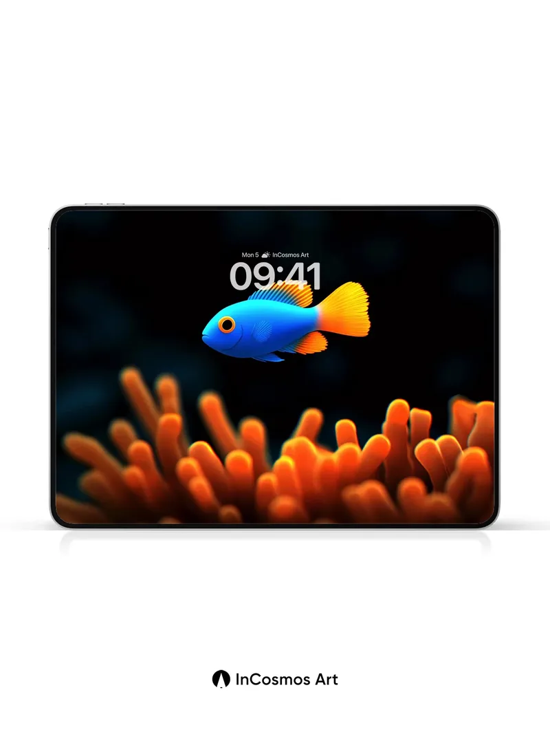 Debug page_description: Did you know that some reef fish can change color in under a second to blend with their surroundings? This electric blue swimmer glides through the deep, its scales shimmering like liquid sapphire against a bed of fiery orange coral, each tentacle pulsing with warmth. You feel the ocean’s breath—slow, steady, alive—pulling you into a world where light dances on edges and silence hums with purpose. Share this with your best friend. Send this to your love and swap a matching set. What if your walls could breathe underwater?