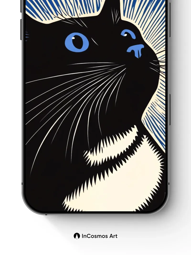 Did you know cats can see ultraviolet light, making their world shimmer with unseen patterns? This bold feline silhouette glows against a kaleidoscope of electric blue rays that pulse like static in the dark, each line a whisper of energy tracing the edges of perception. The stark contrast between midnight fur and luminous streaks evokes a moment frozen in cosmic surprise—where curiosity meets the unknown.