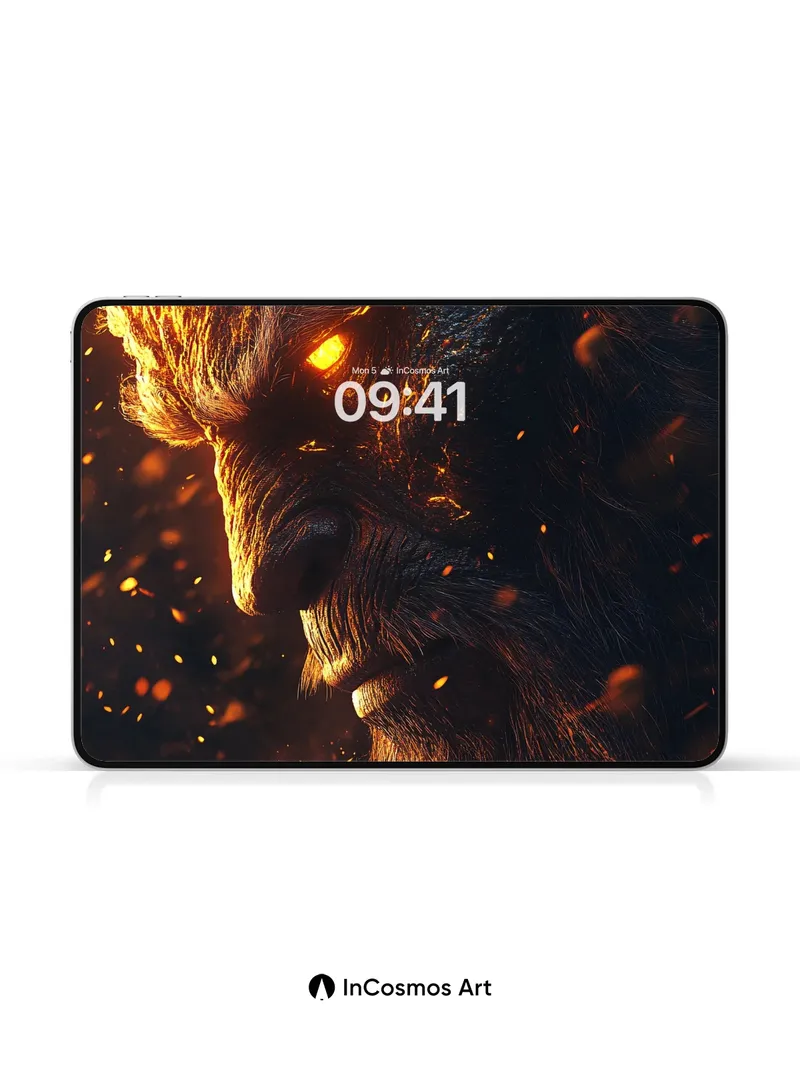Ember-Clad Beast Wallpaper with Molten Gaze