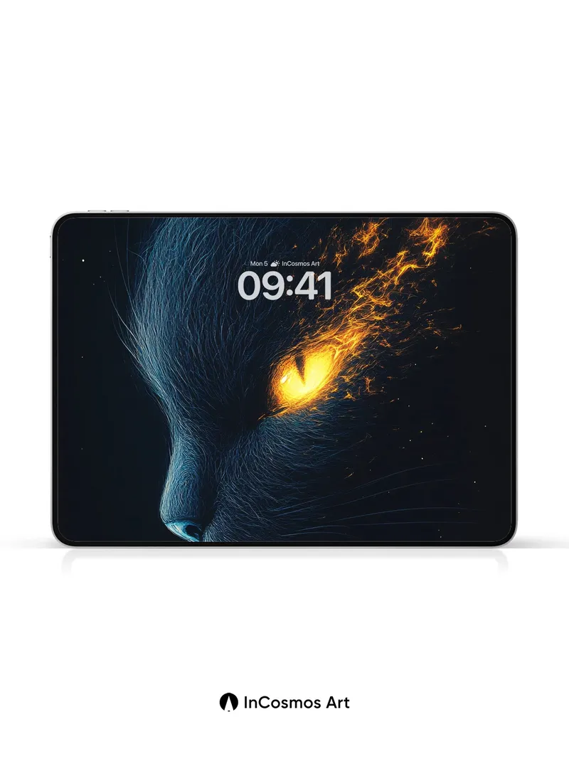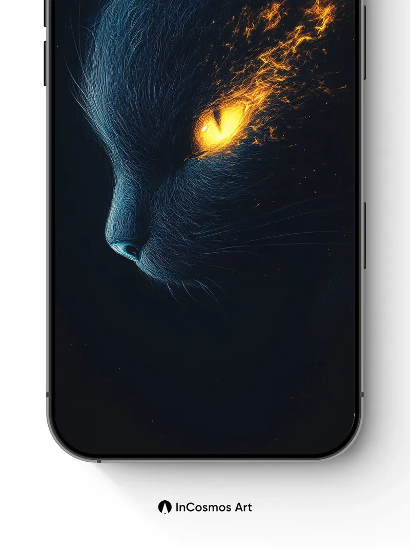 Ember-Eyed Feline Wallpaper with Cosmic Flames