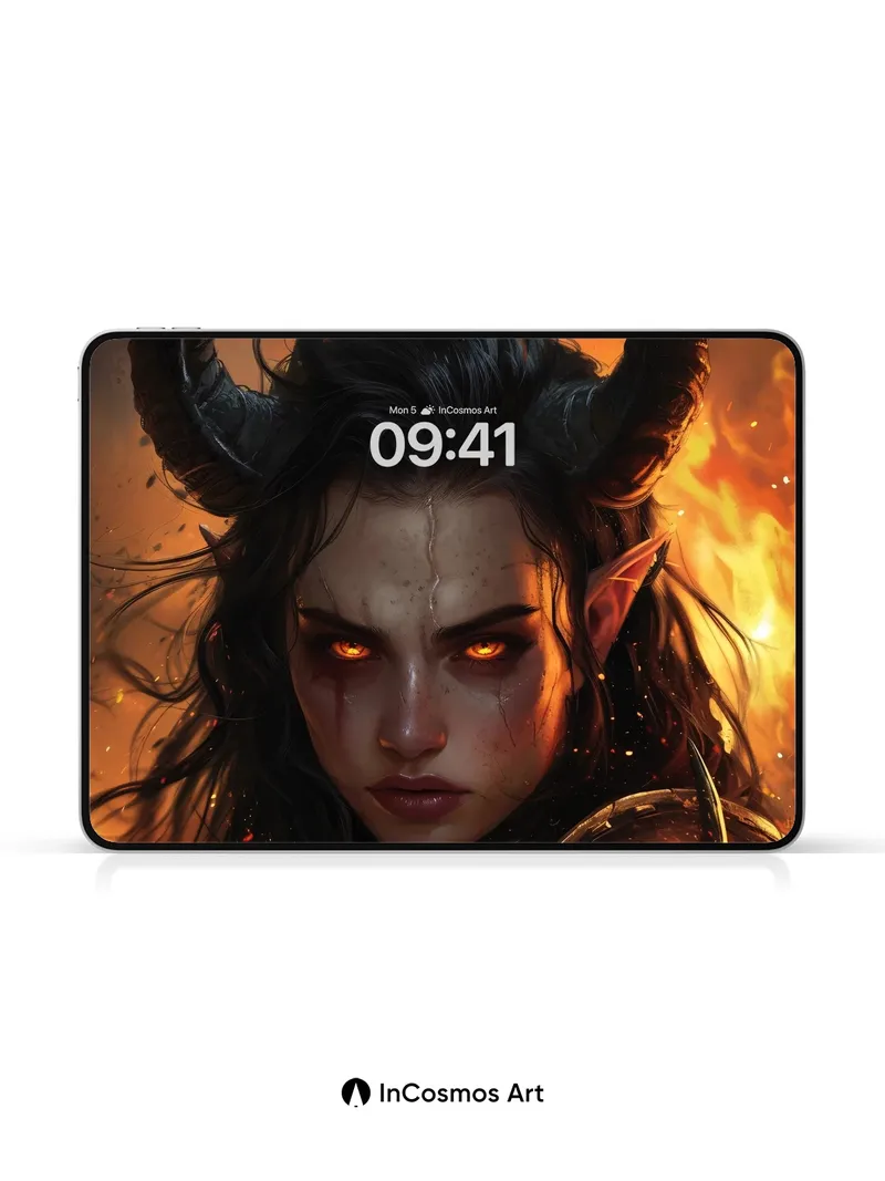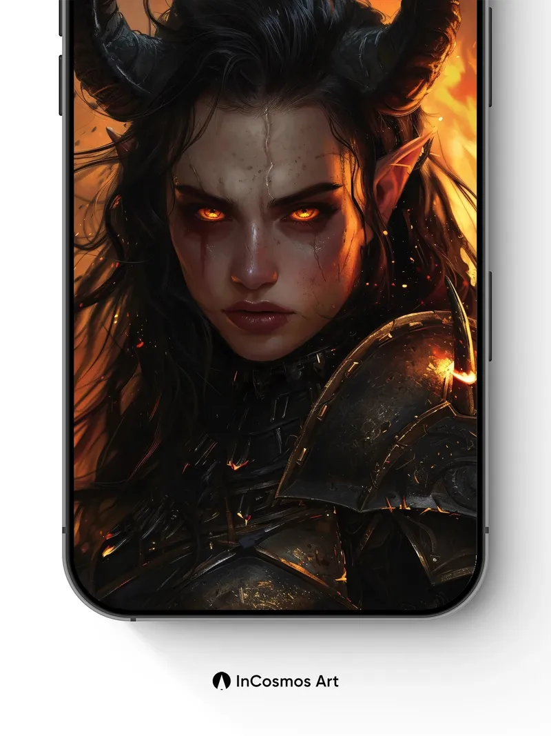 Ember-Eyed Warrior Wallpaper with Horned Majesty