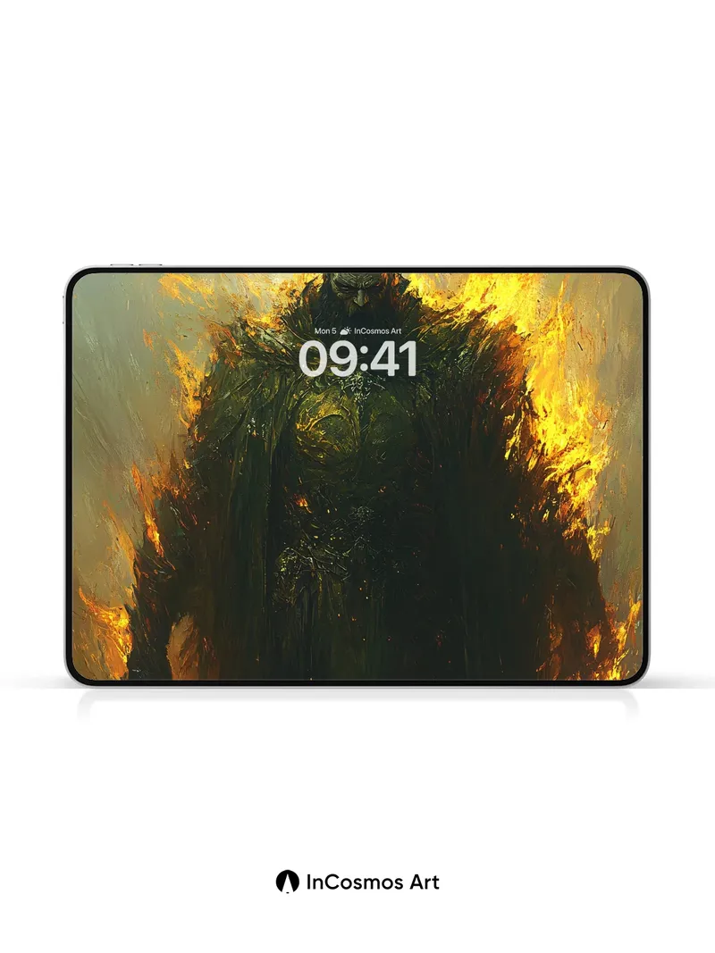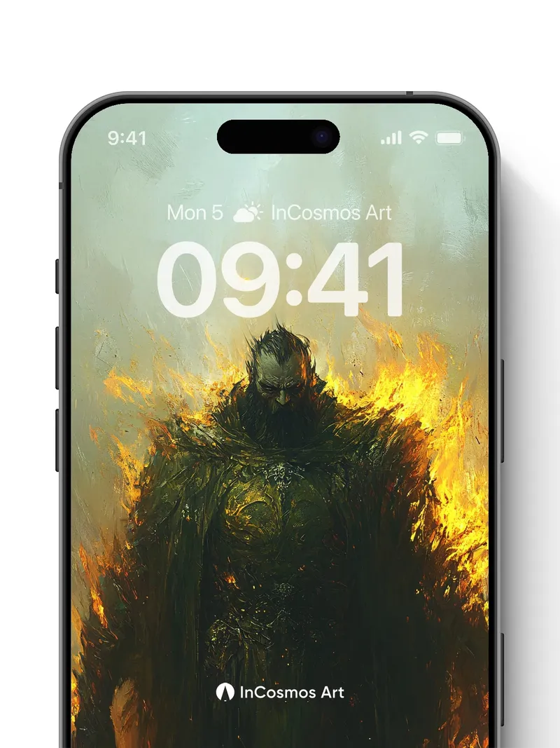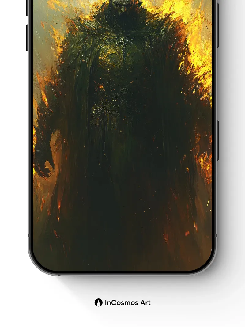 Ember-Wrapped Warrior Wallpaper with Ashen Crown