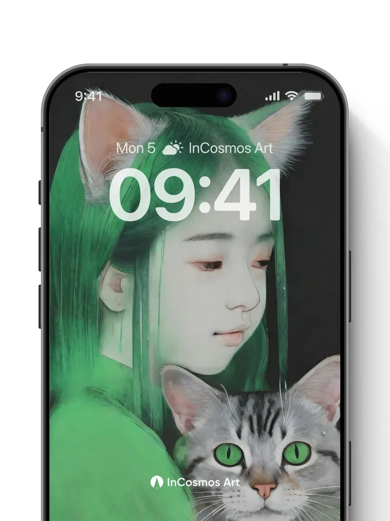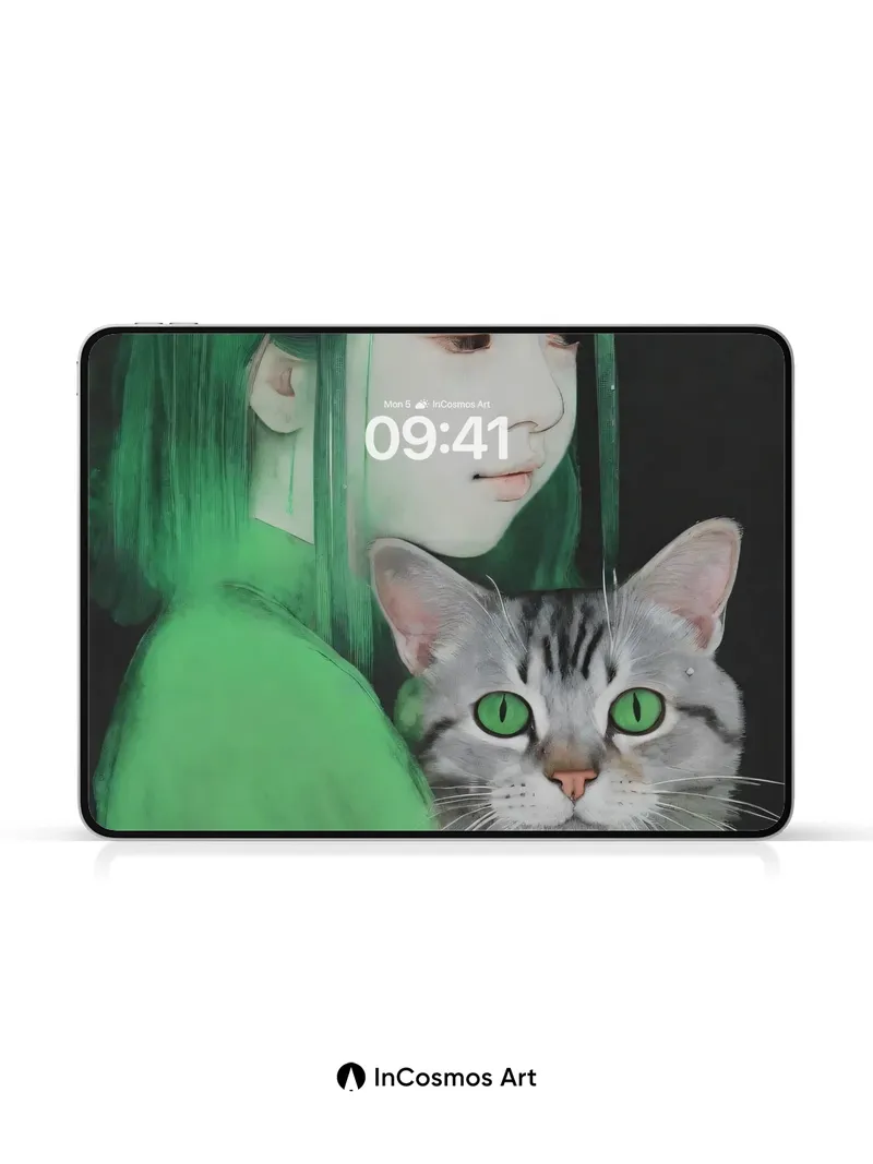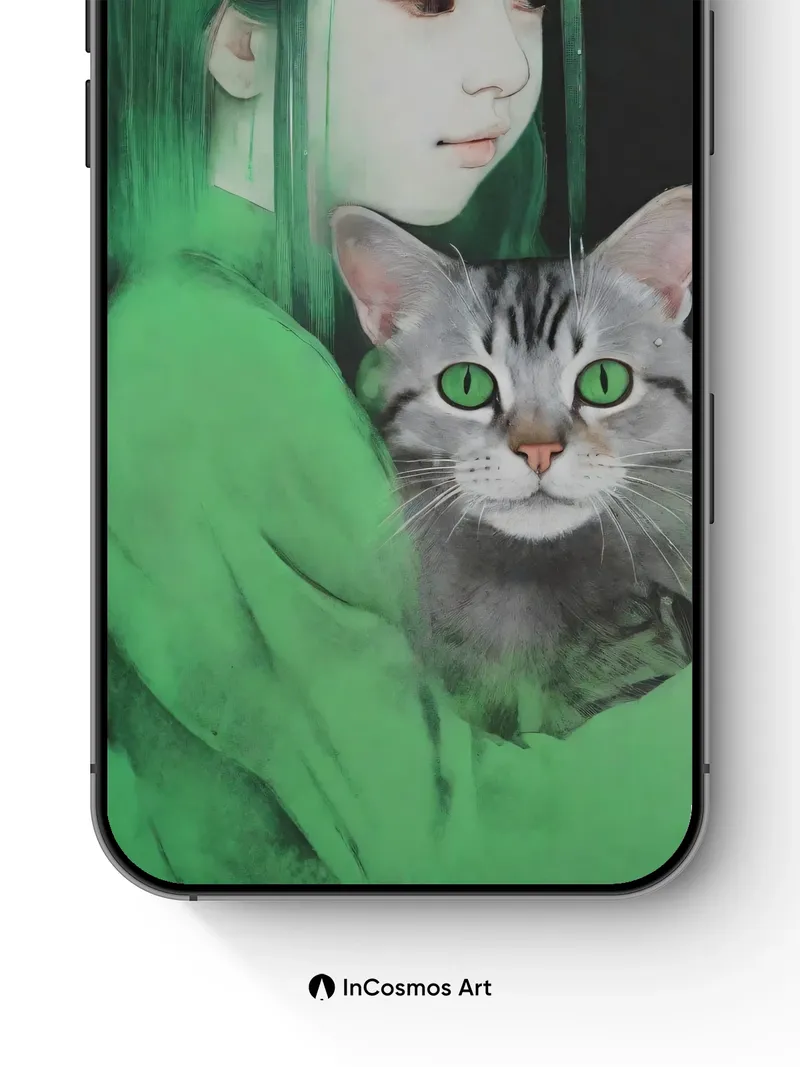 Emerald Hush Wallpaper with Feline Gaze
