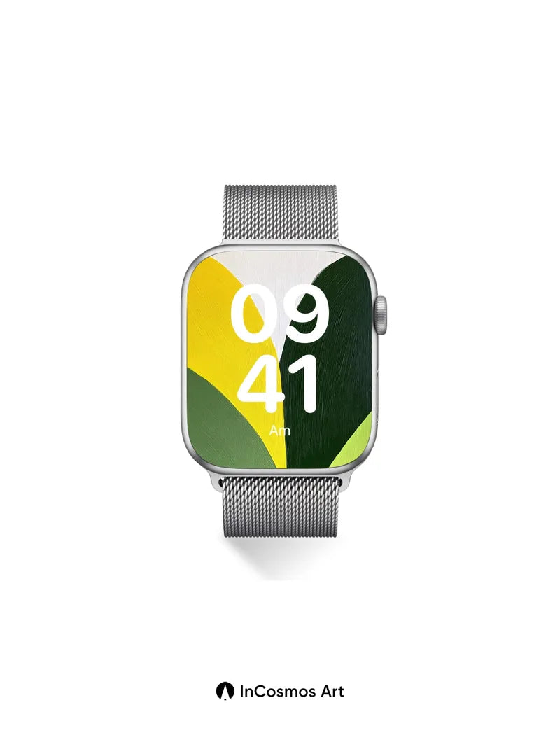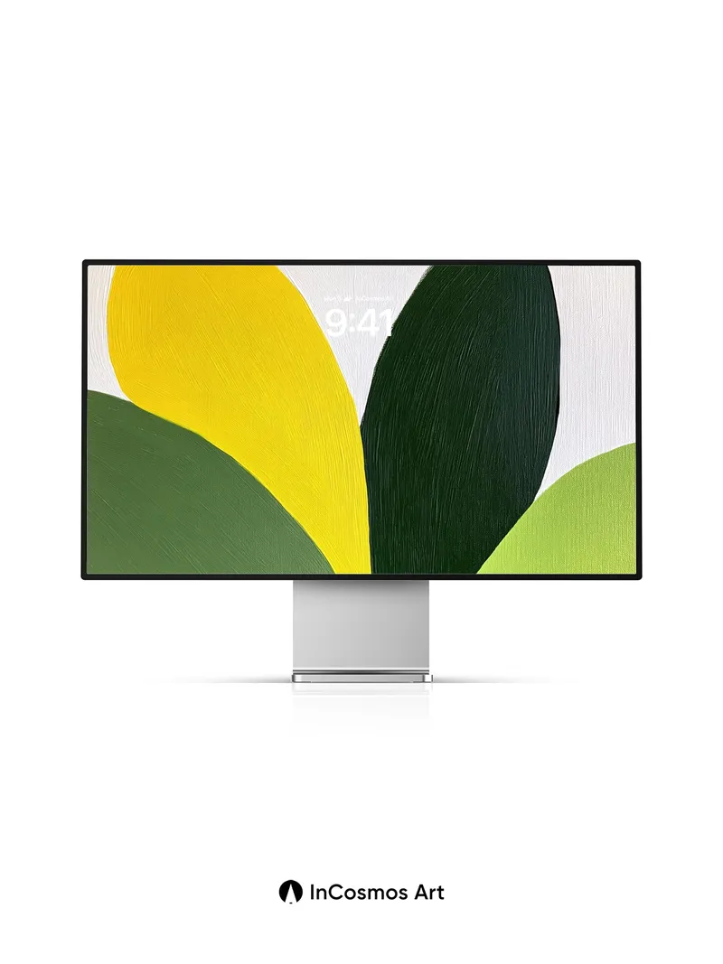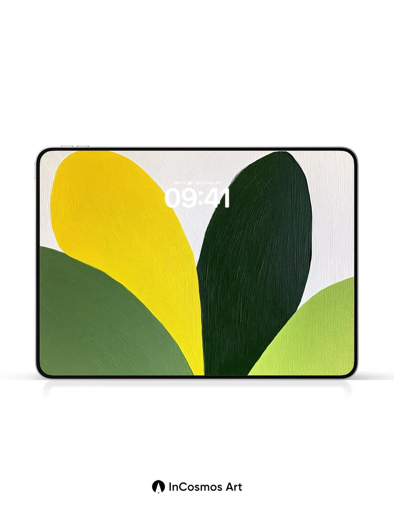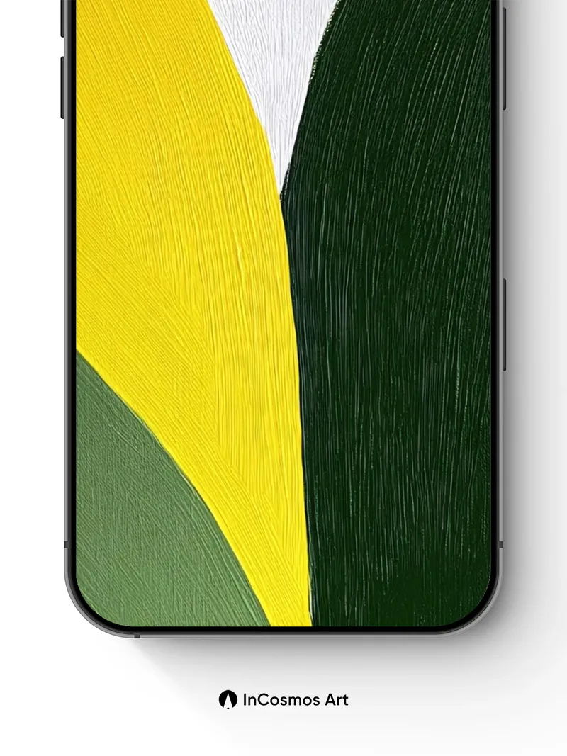 Did you know that chlorophyll absorbs light most efficiently in the blue and red parts of the spectrum, leaving green to reflect—so every leaf is a quiet alchemist? This abstract bloom breathes in textured strokes, where golden yellow spills like morning sun over deep forest greens, each shape a silent promise of growth. The brushwork hums with life, as if color itself is rooted in soil and dreaming of sky.