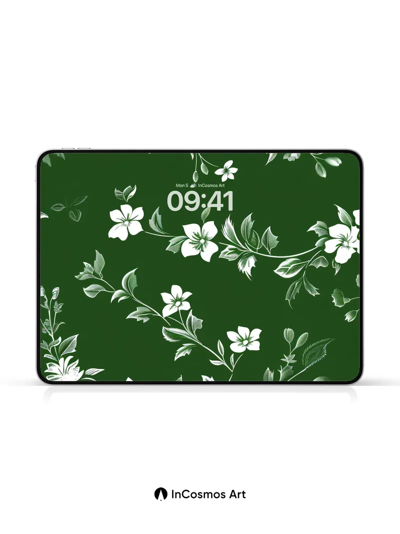Debug page_description: Did you know that the delicate silver tracery in this pattern mimics the natural branching of leaf veins under moonlight? Each bloom seems to exhale a quiet breath, its petals edged in frost-like light against a deep forest green that swallows shadows like velvet. You’re not just seeing a design—you’re stepping into a garden where silence sings and every stem holds a secret. Share this with your best friend. Send this to your love and swap a matching set. What if the flowers began to remember your name?